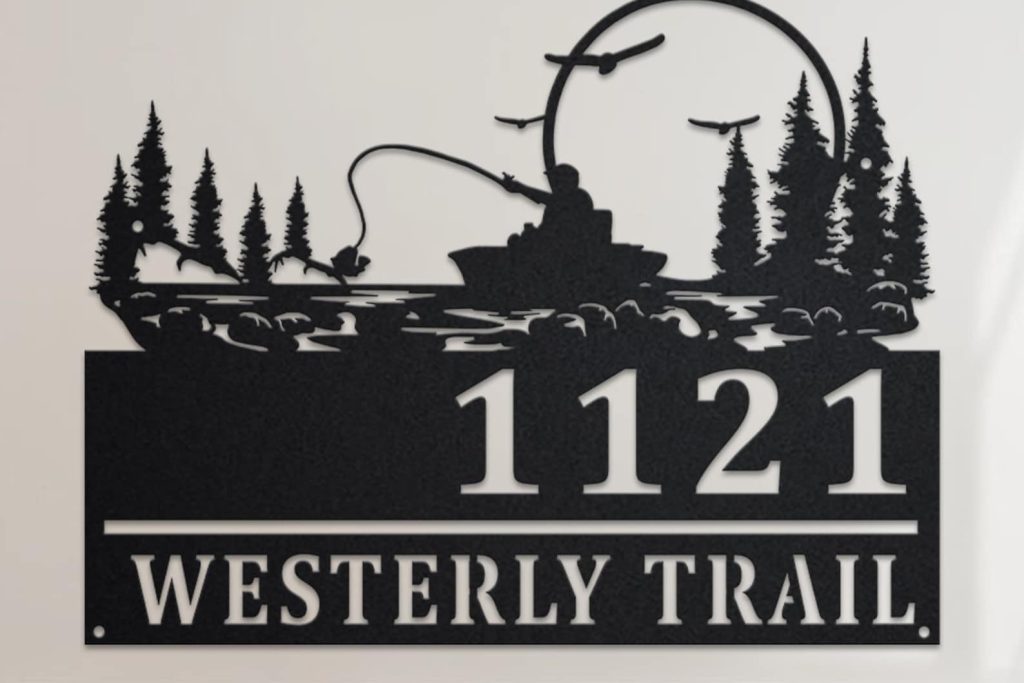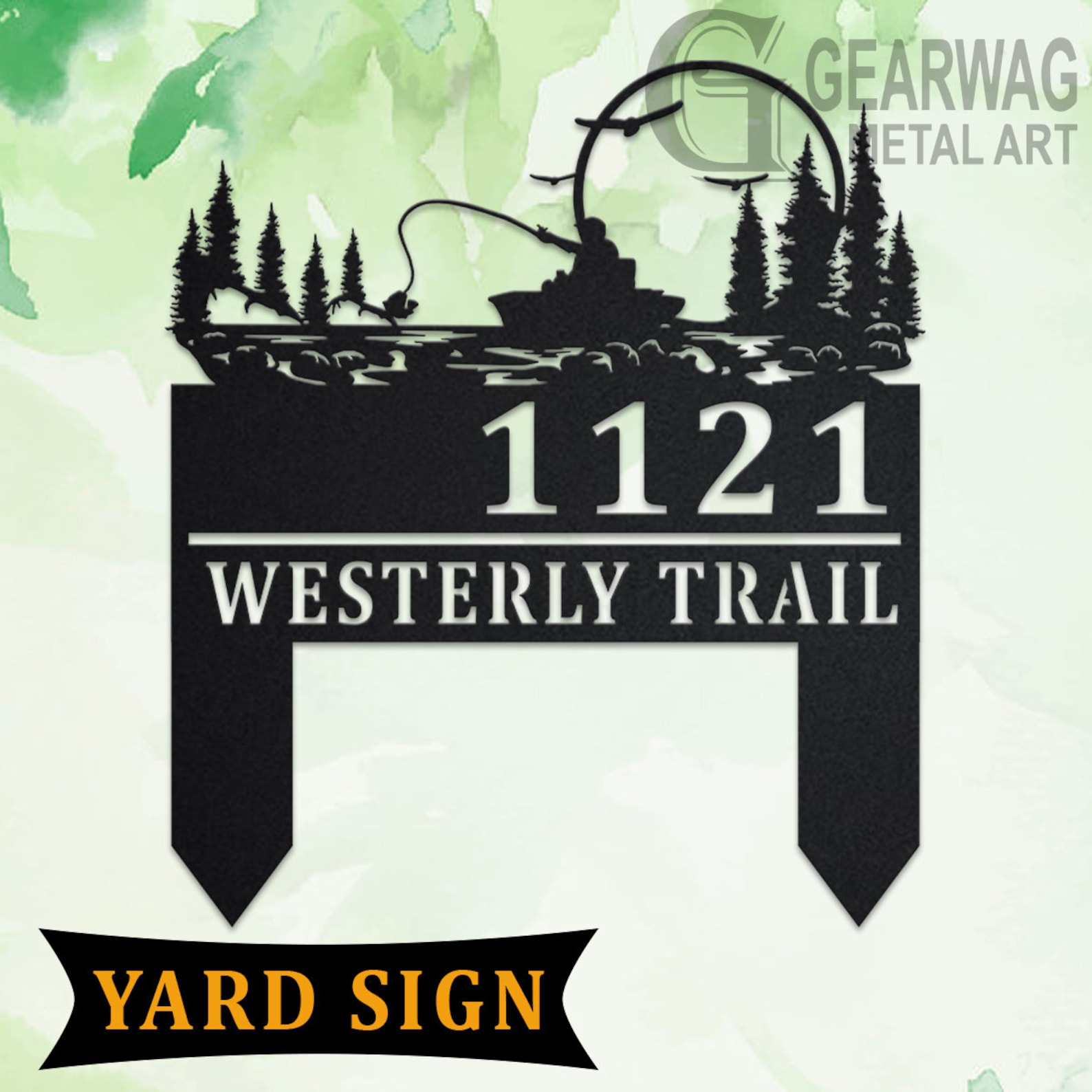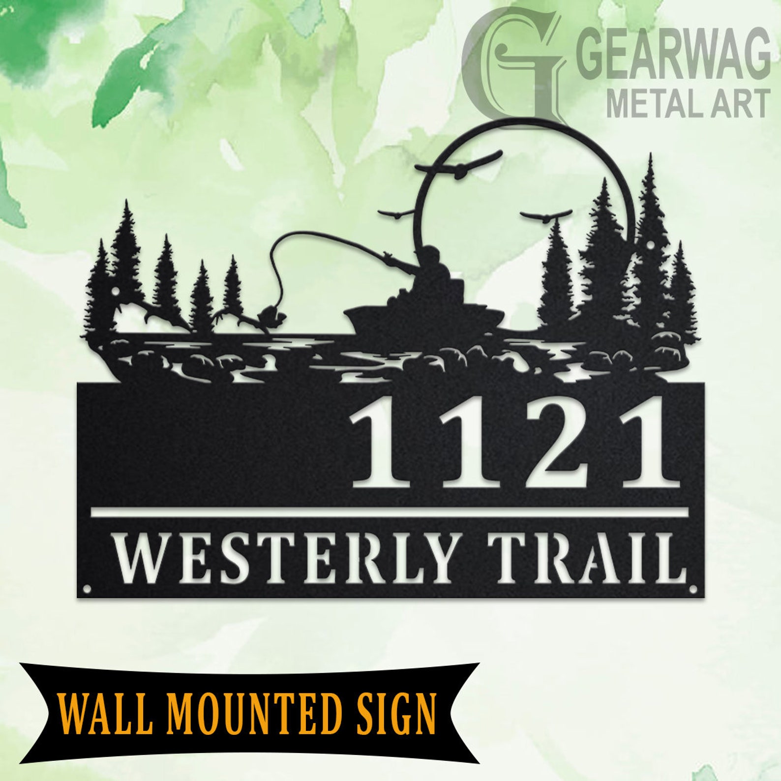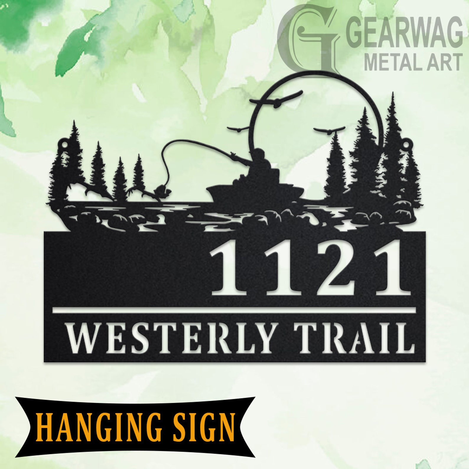 Personalized Boat Fishing Metal Address Plaque – Outdoor Yard Sign