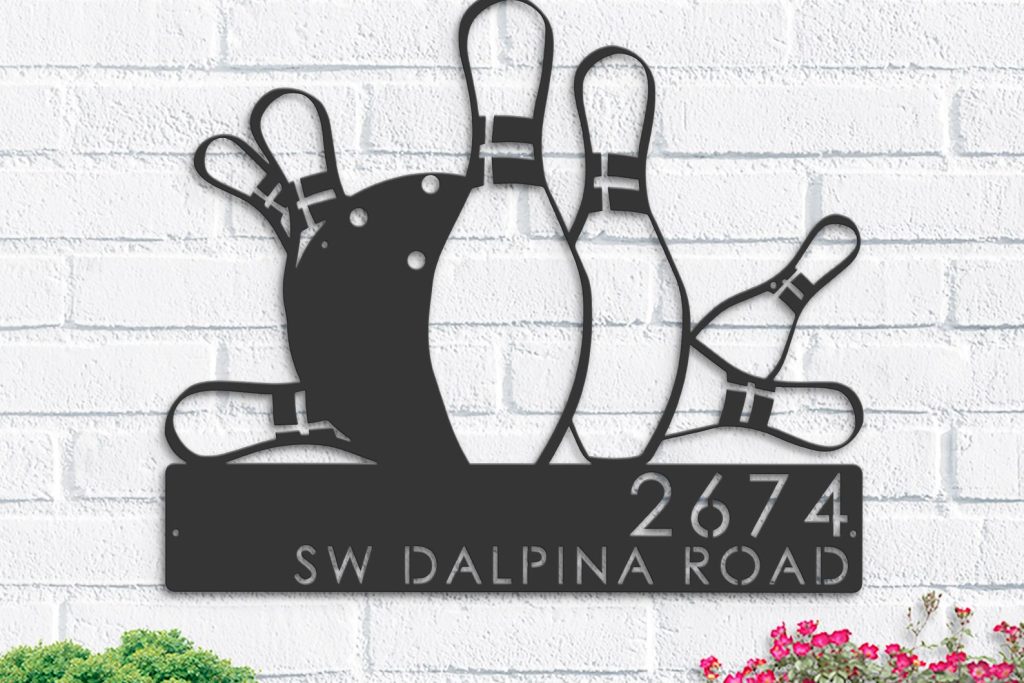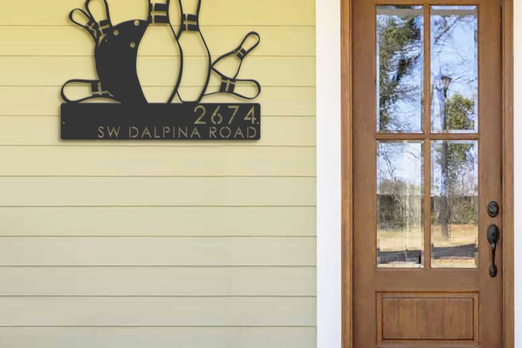 Be the first to review “Personalized Bowling Metal Address Plaque – Outdoor Yard Sign”