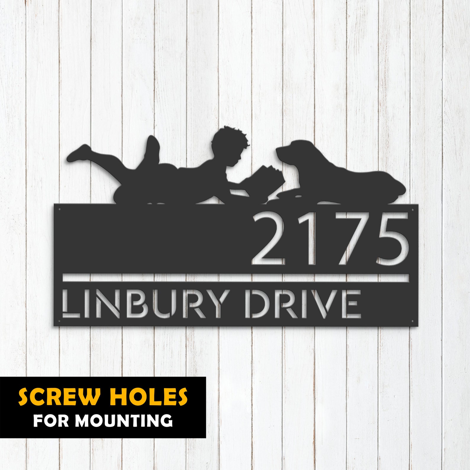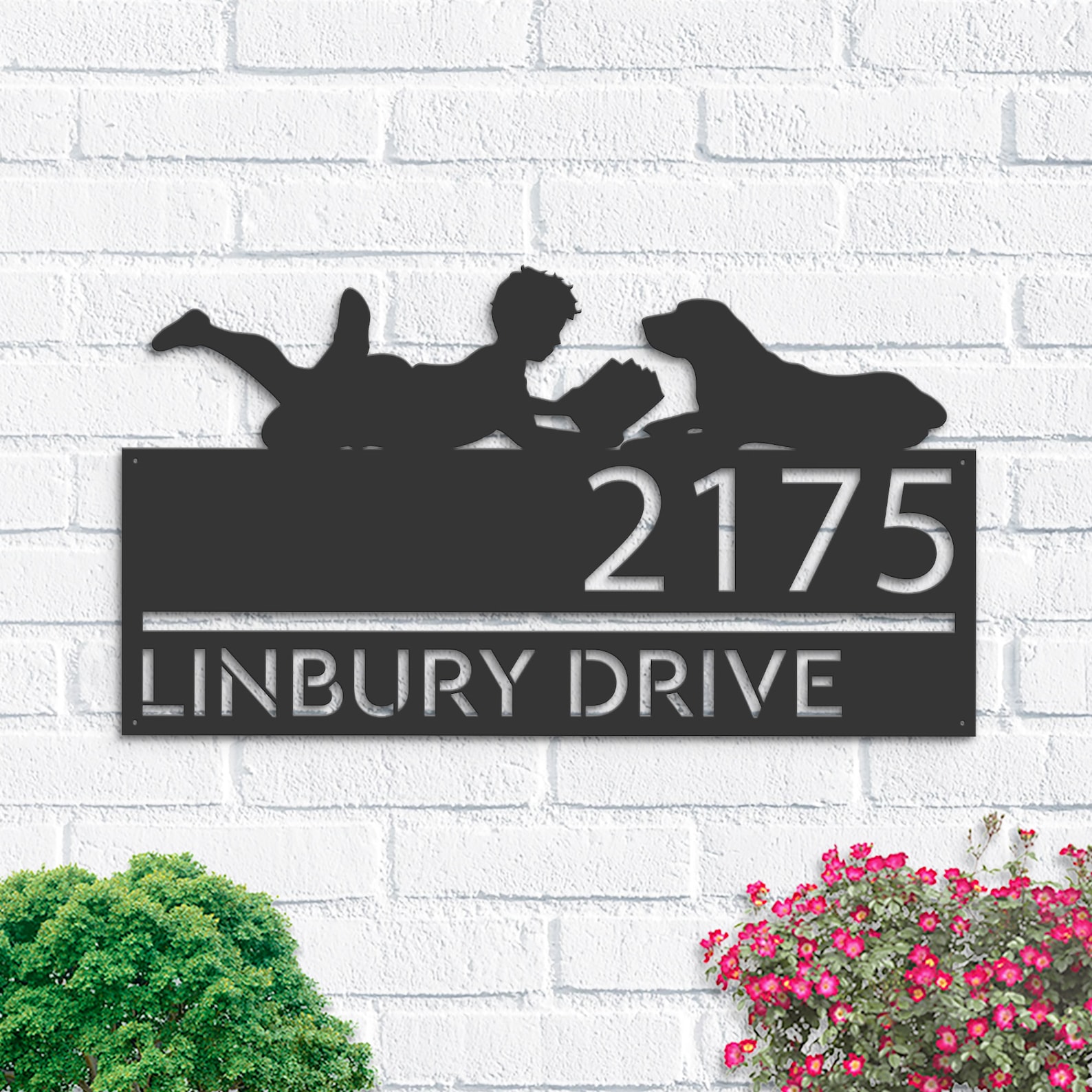 Be the first to review “Personalized Boy Reading with Dog Metal Address Sign with LED”
