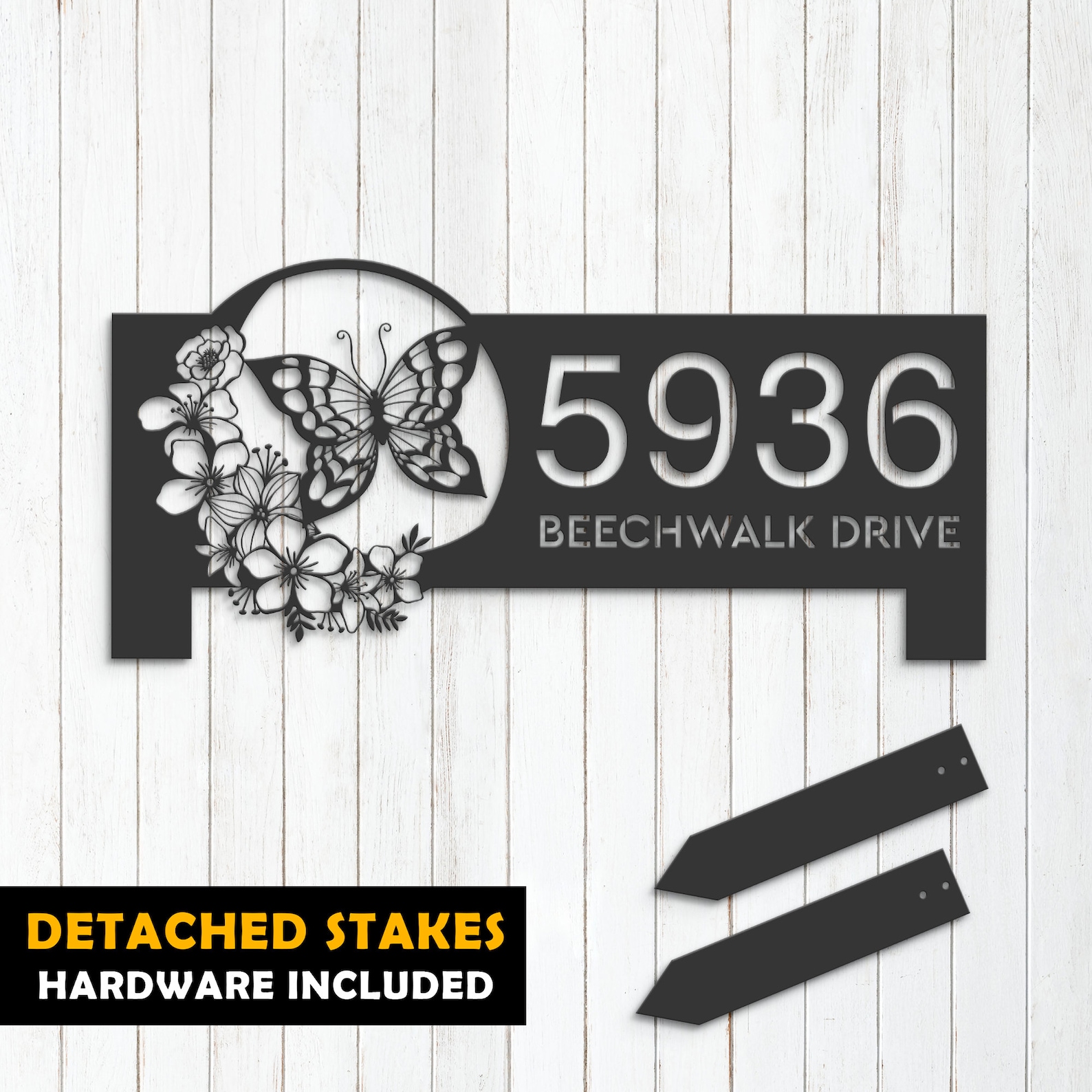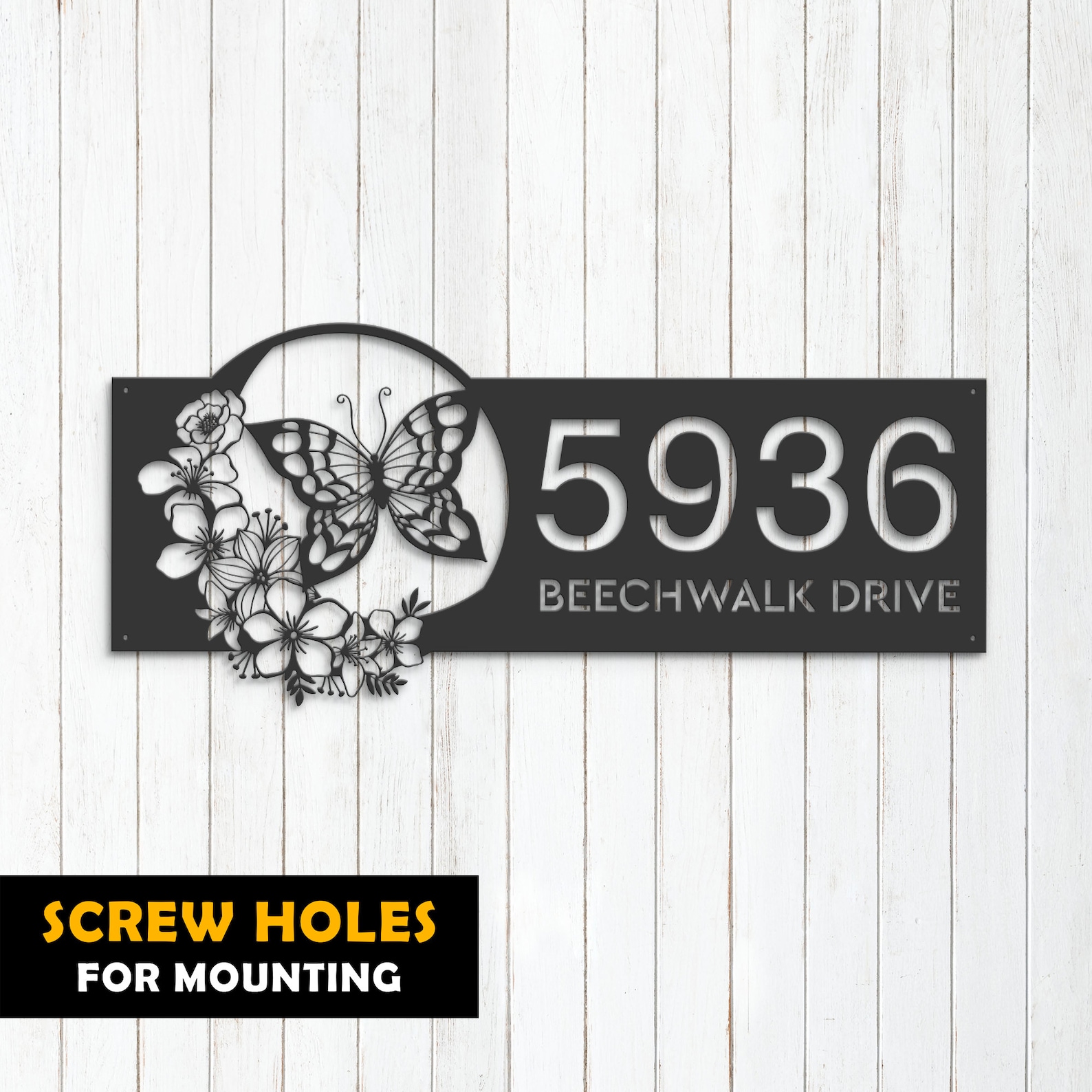 Introducing our custom metal address sign, available in 5 size options and 4 different styles to suit your individual needs. With our address sign, you can make a statement while also ensuring that visitors can easily locate your home or business.