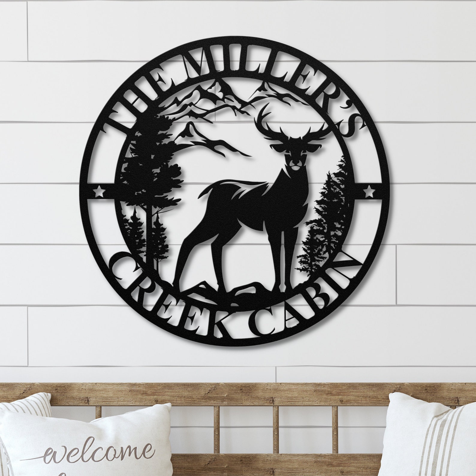 Be the first to review “Personalized Cabin Metal Sign – Mountain Deer Metal Wall Art”