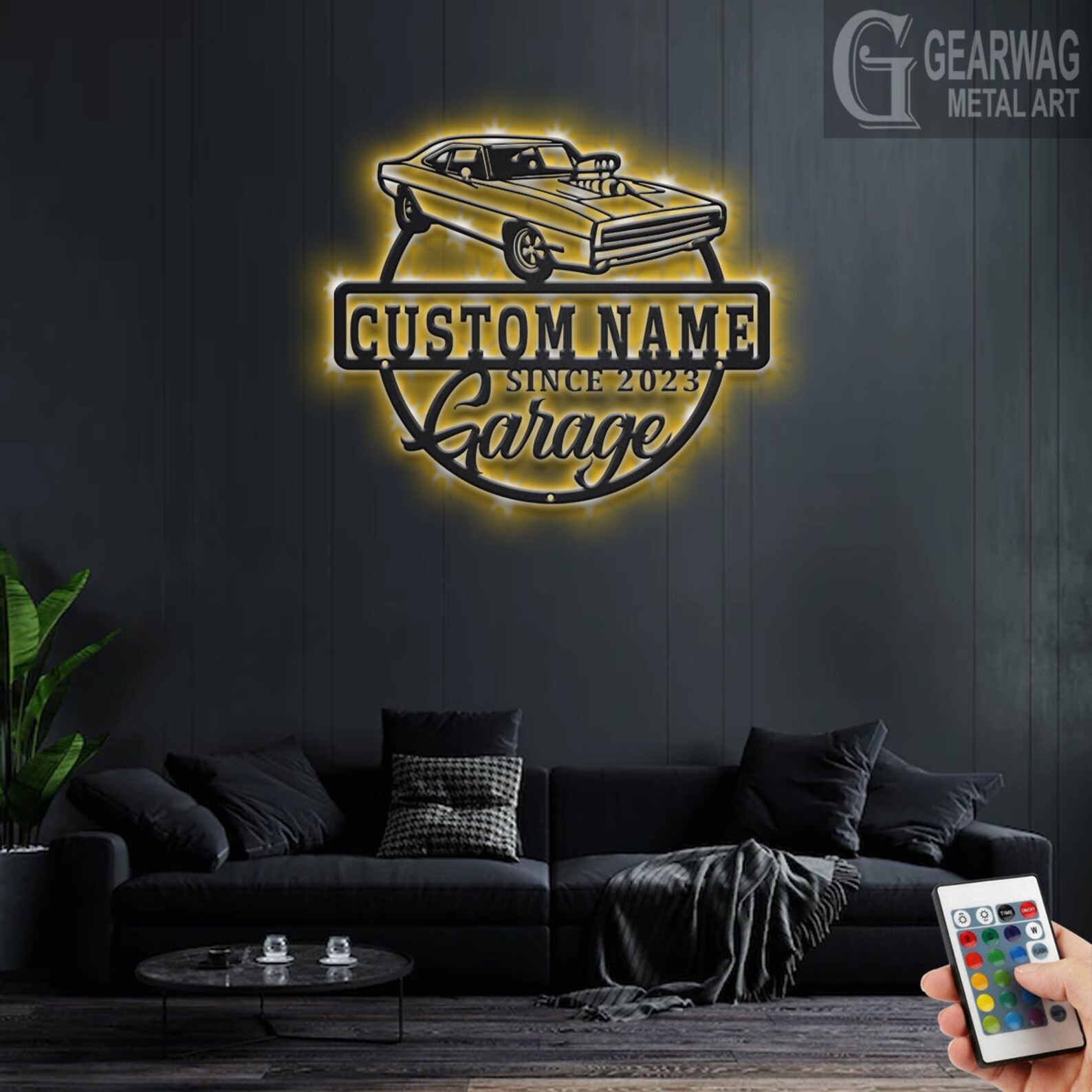 Personalized Car Garage Name Sign with LED Light