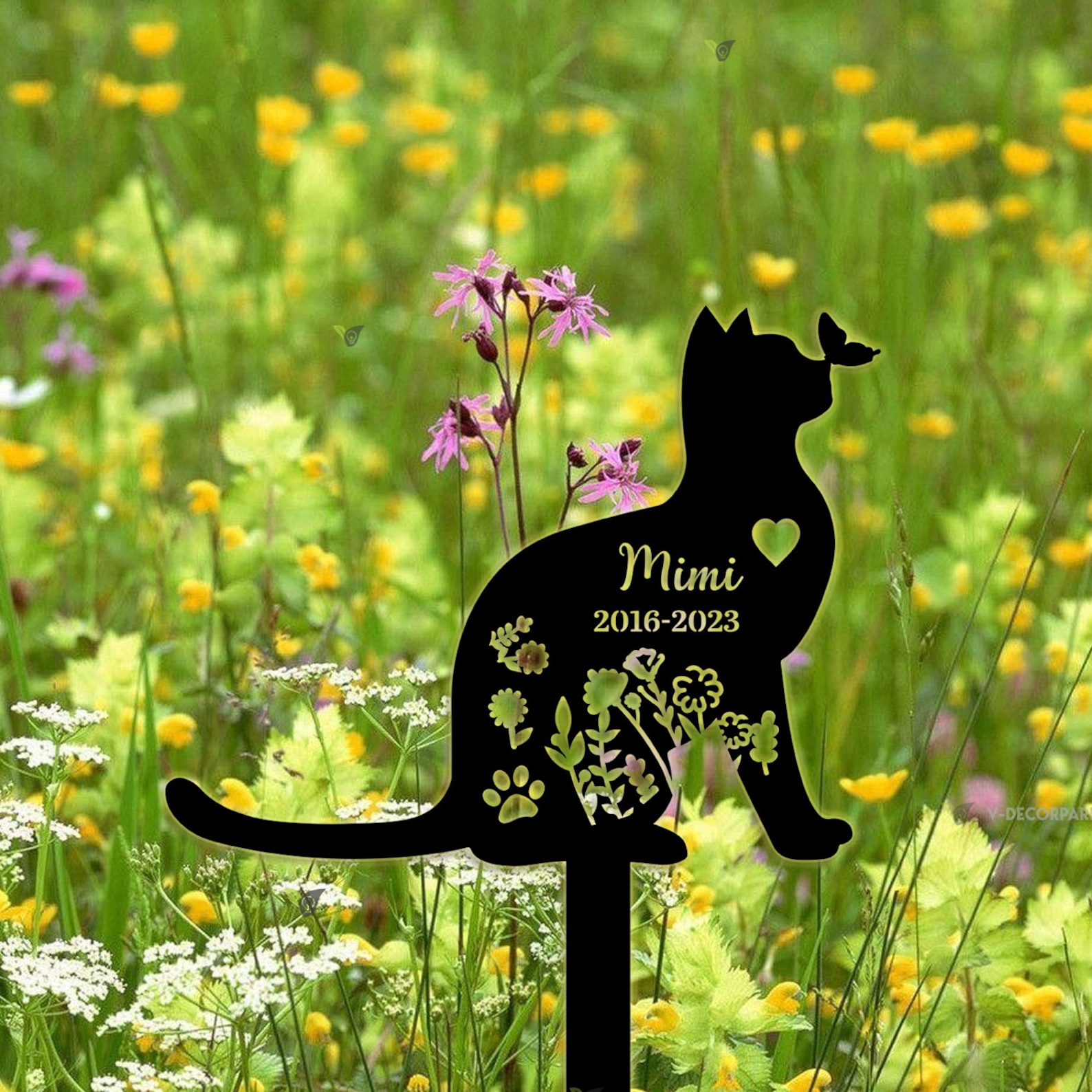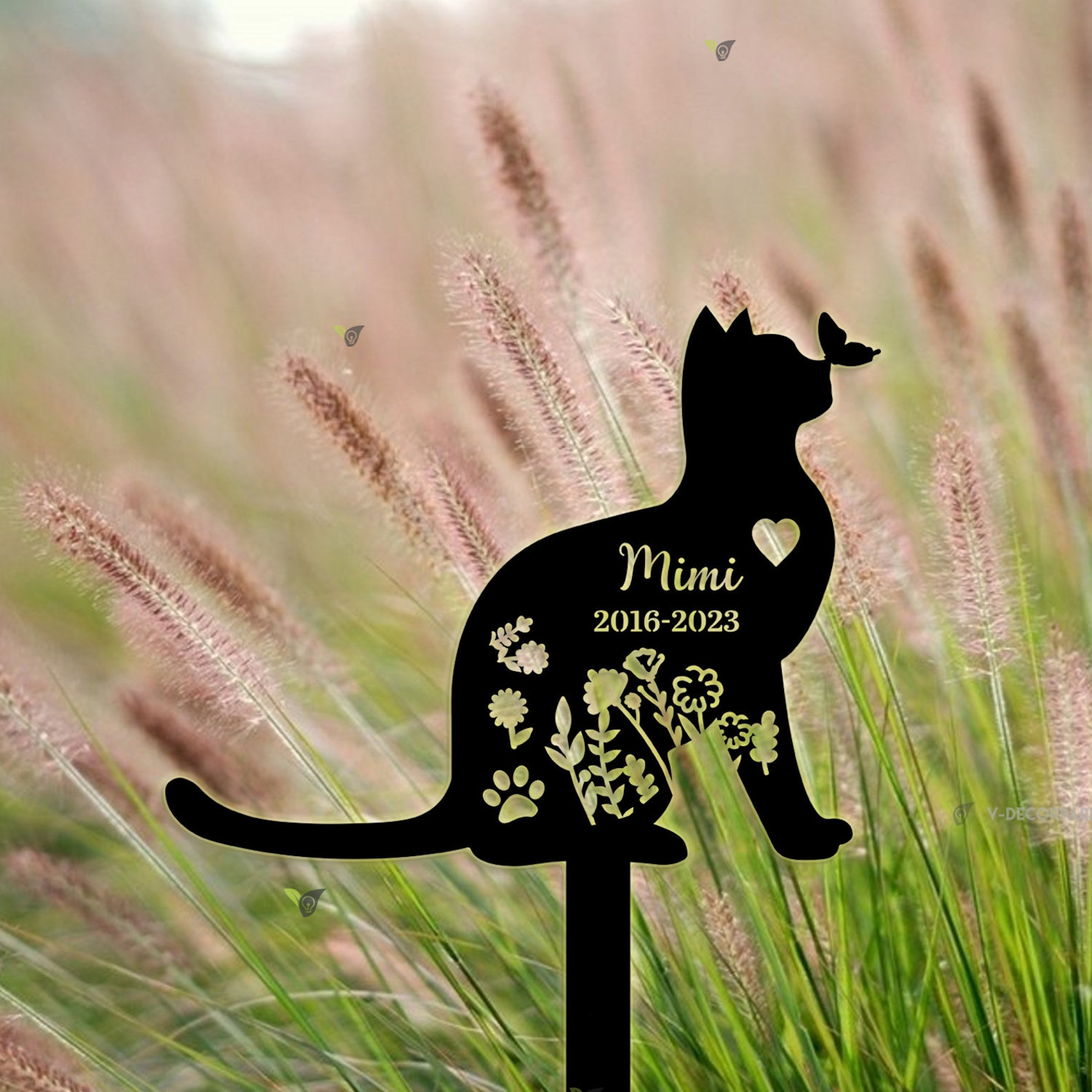 Be the first to review “Personalized Cat Memorial Metal Stake – Flower Design”