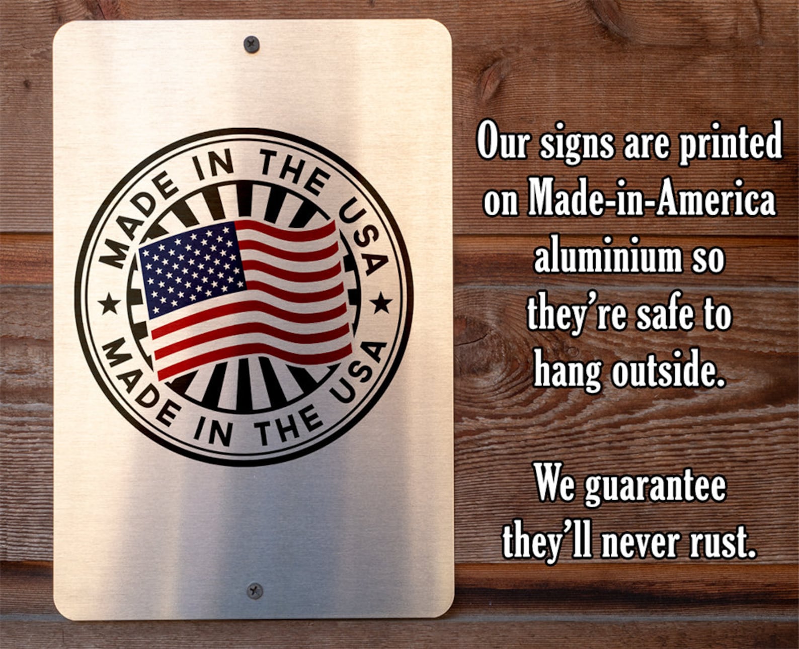 Durable – 8" x 12" or 12" x 18" Aluminum metal sign printed with epoxy ink so you can proudly hang it inside or outside