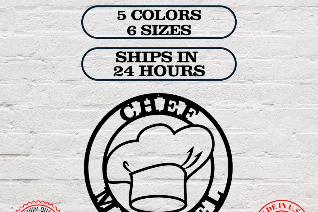 Personalized Chef Hat Metal Sign for Kitchen