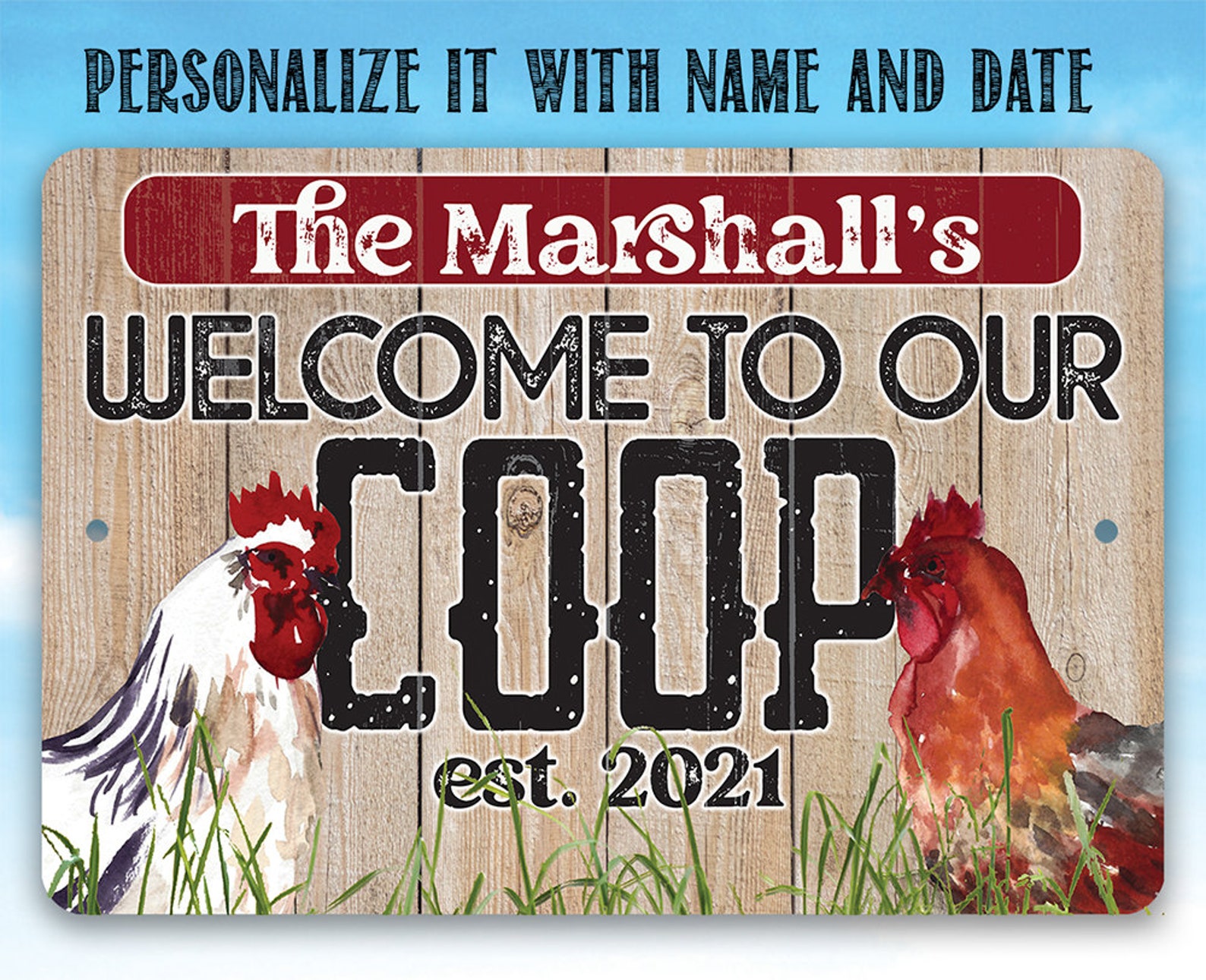 Tin – Personalized Welcome To Our Coop Metal Sign – 8" x 12" or 12" x 18" Use Indoor/Outdoor – Chicken Farm Decor