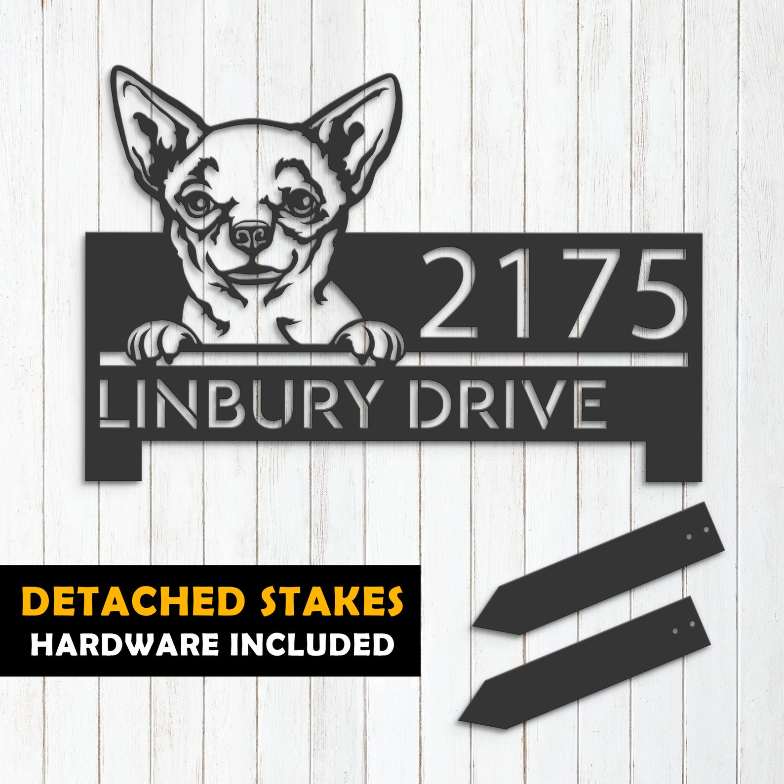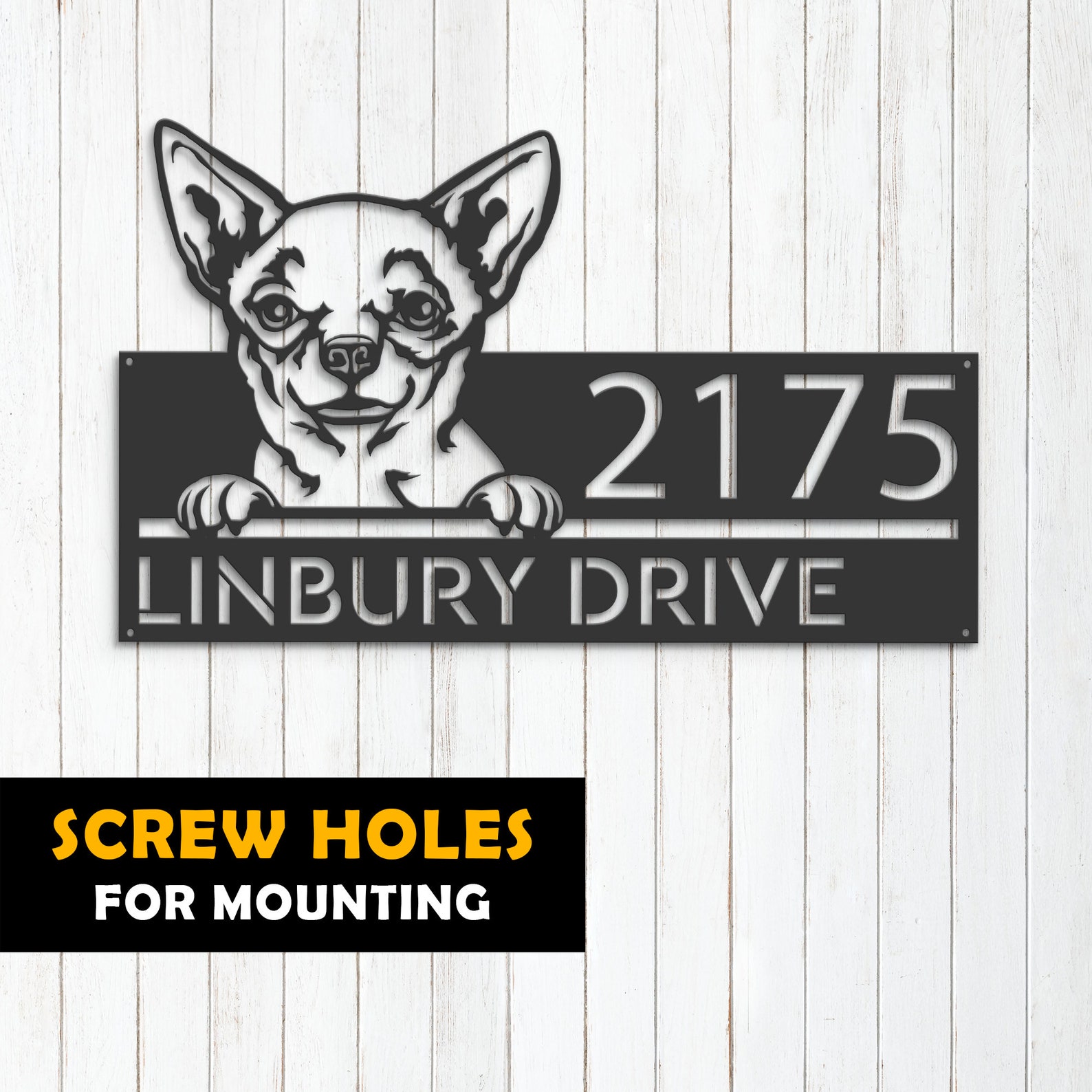 Be the first to review “Personalized Chihuahua Metal Address Sign – Custom House Number”