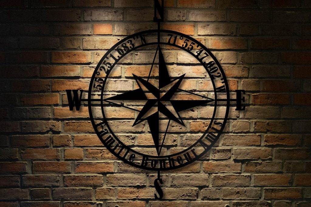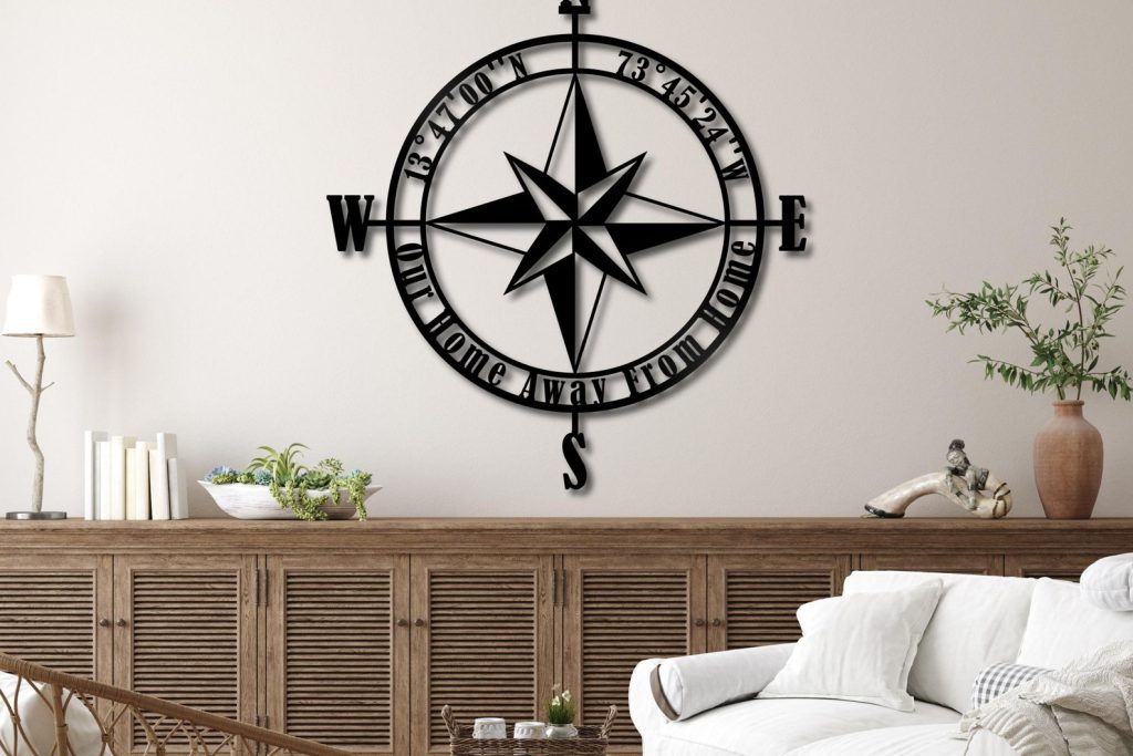 Personalized Compass Metal Wall Decor .