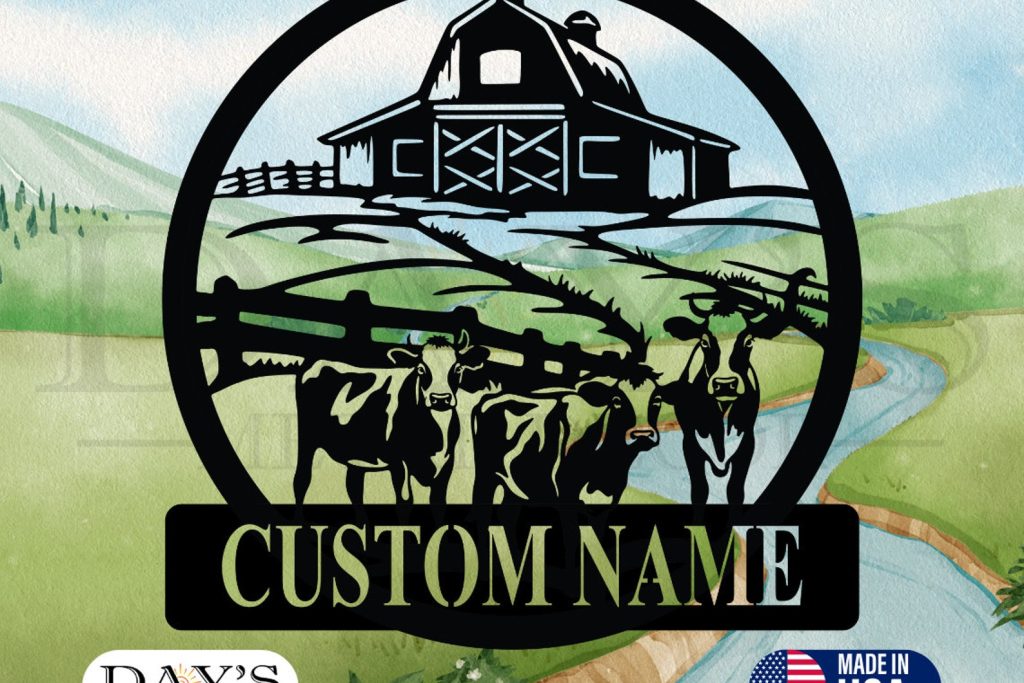 Cows On Farmland Personalized Metal Sign, Cow Metal Sign, Farmhouse Decor, Farm Signs, Farm Decor, Personalized, Metal Signs, Farmer Sign