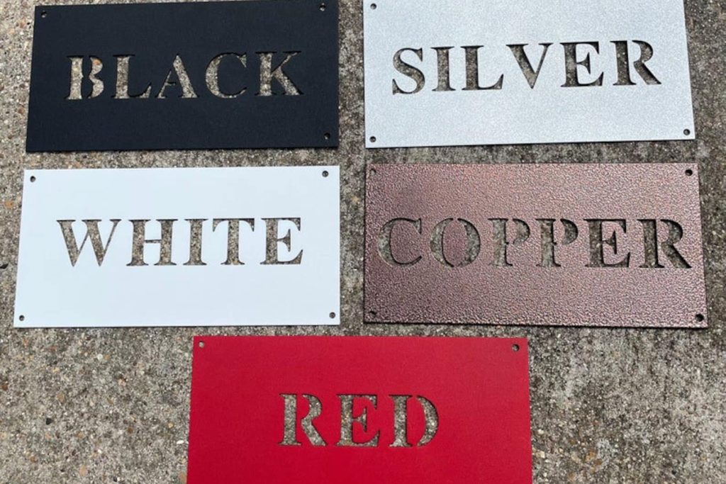 18 Gauge Steel 5 Color Options (Black, Red, White, Copper, Silver) 6 Sizes – 36", 30", 24", 18", 14", 12" *Selected size is based on the maximum height or width of the sign depending on physical orientation Mounting Hardware Not Incl