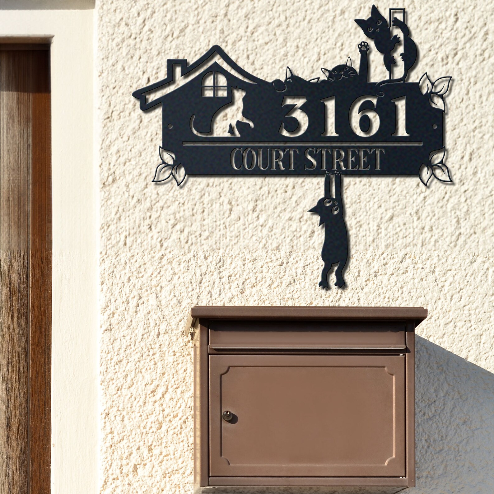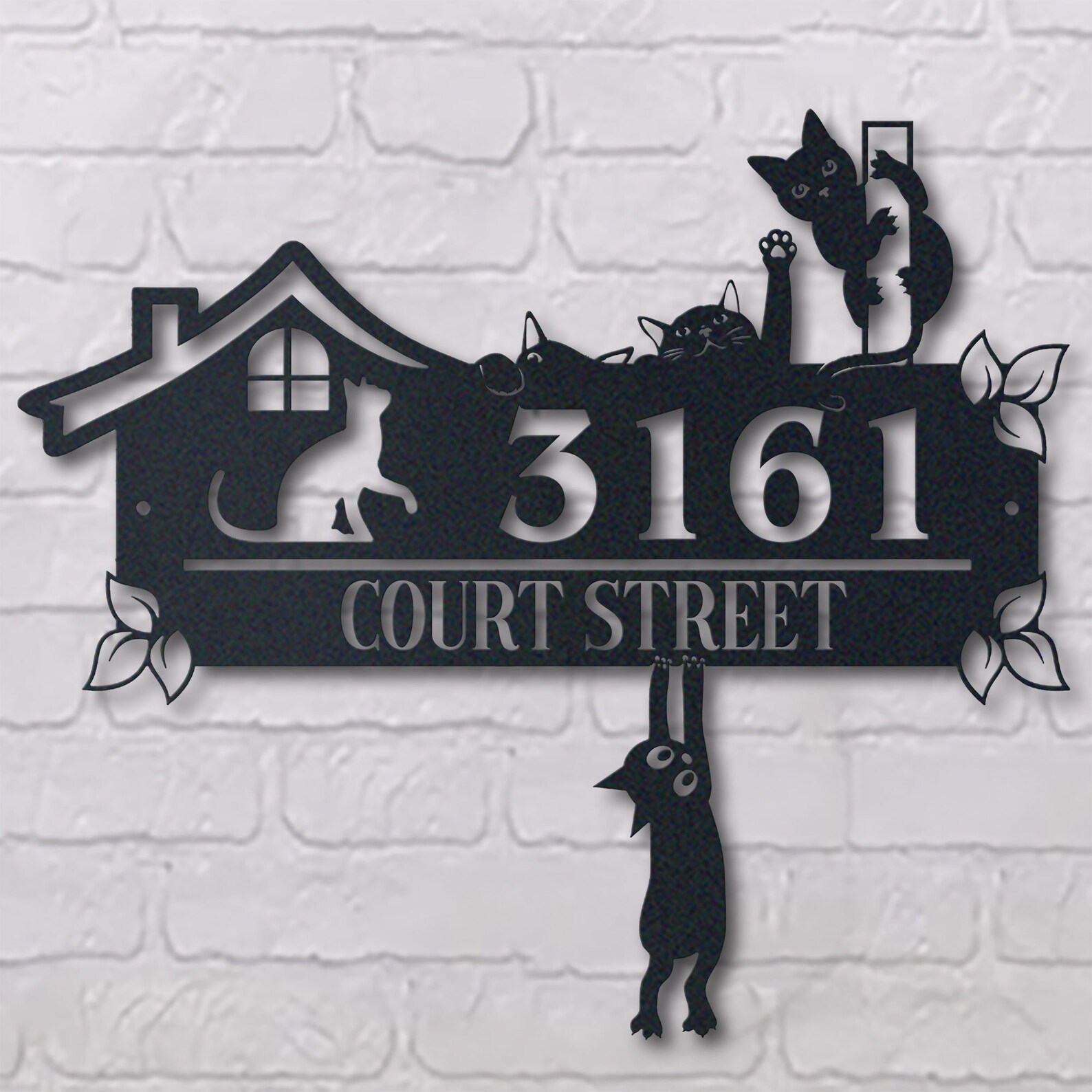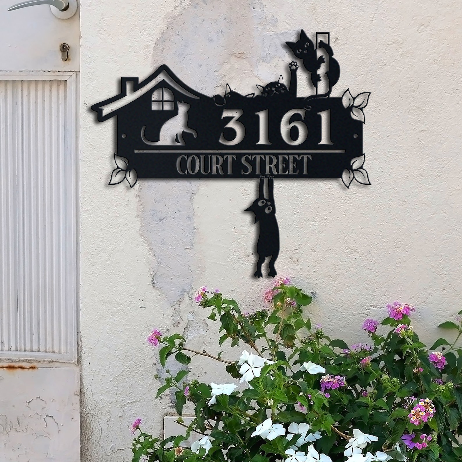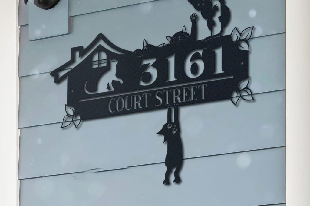 Be the first to review “Personalized Cute Cat Metal Address Sign – House Number”