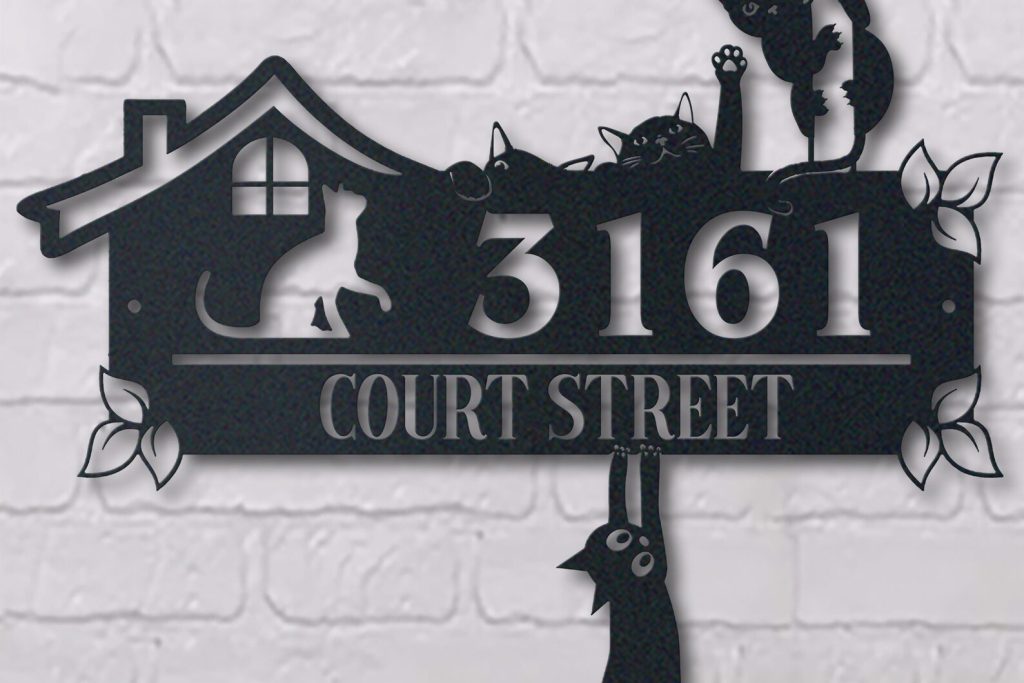 Customize your address sign with your choice of text, making it a great gift for any occasion. For cat lovers, our sign is available with options for cat mom or cat dad, making it a unique and thoughtful gift.