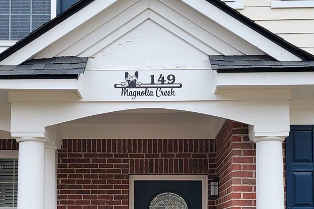 Customize your house number sign with your choice of text, making it a great gift for any occasion. For dog lovers, our sign is available with options for dog mom or dog dad, making it a unique and thoughtful gift such as new house gift, housewarming gift…