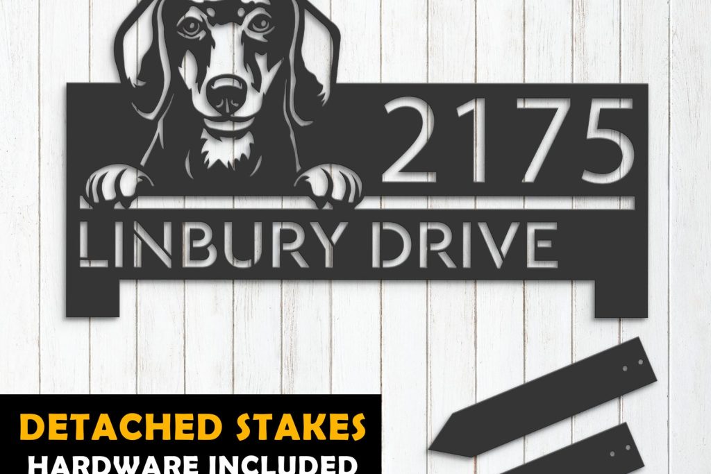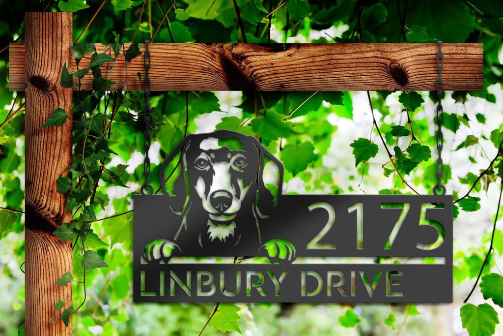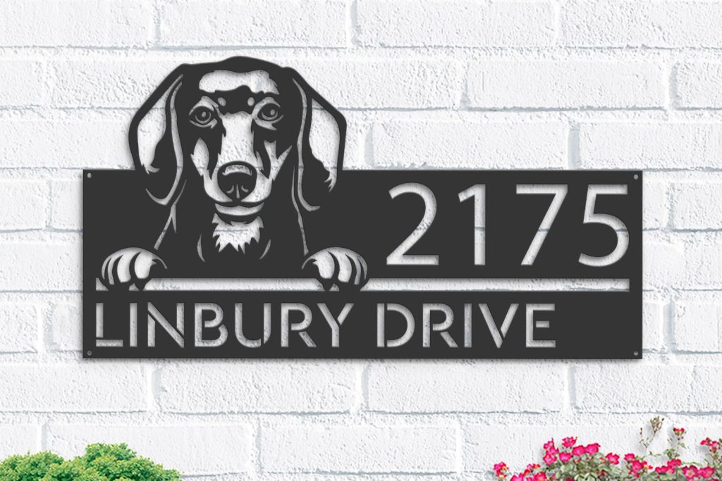 Be the first to review “Personalized Dachshund Metal Address Sign – Custom House Number”