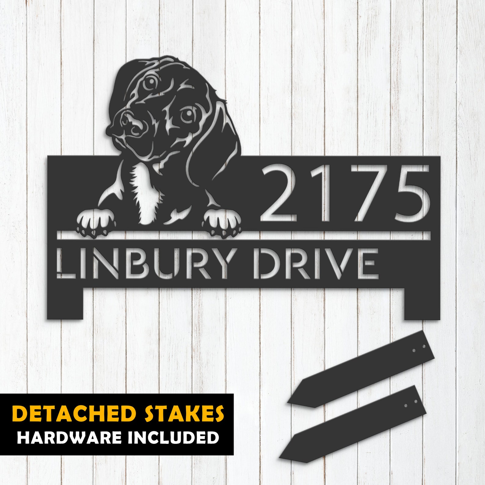 Be the first to review “Personalized Dachshund Metal Address Sign with Hanging Plaque”