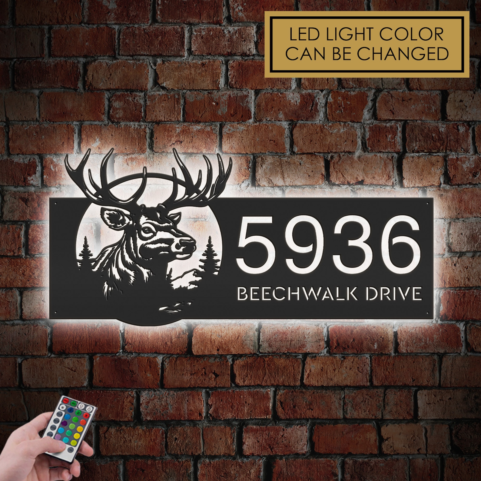 Be the first to review “Personalized Deer Elk Wildlife Metal Address Sign with LED”