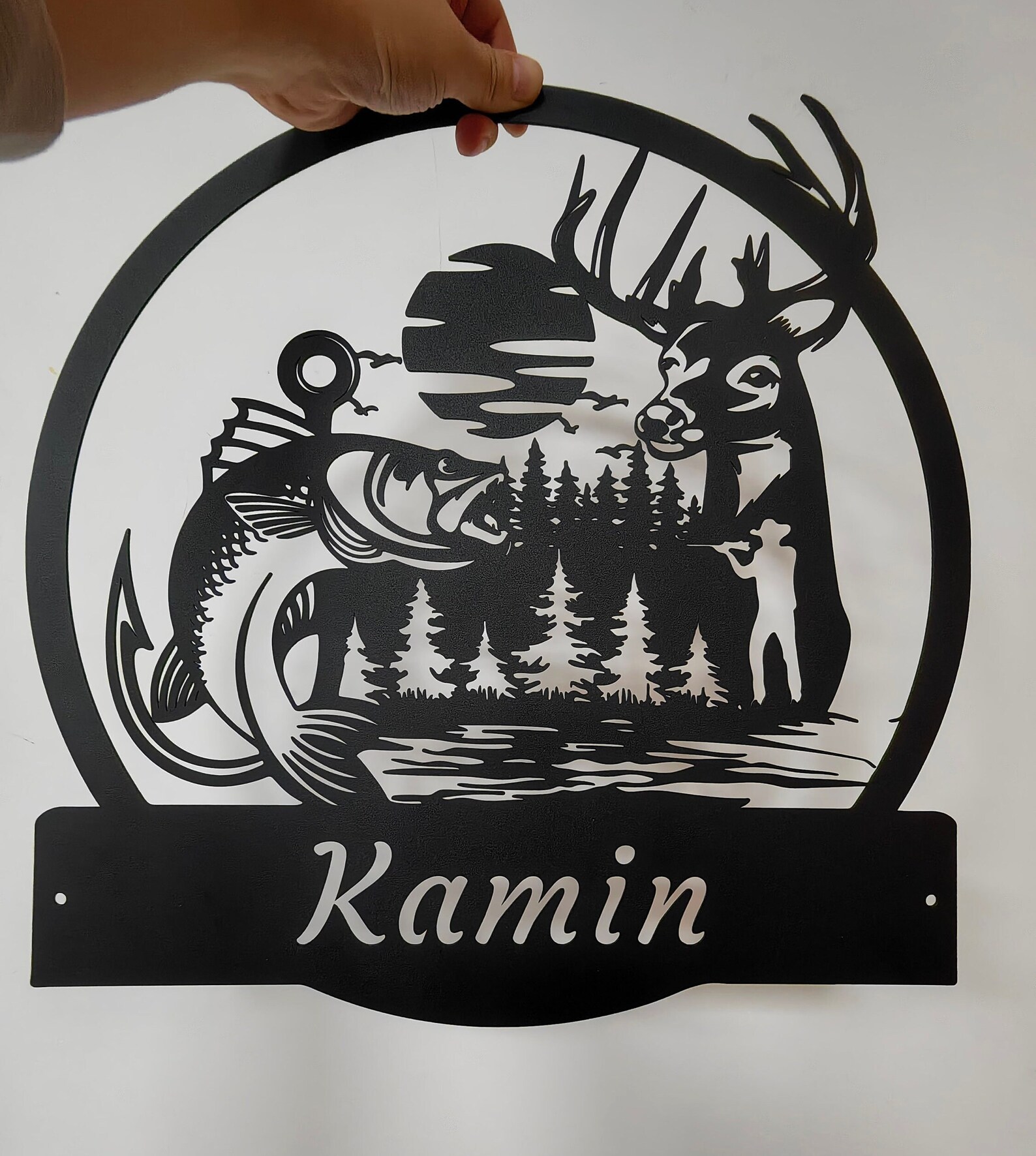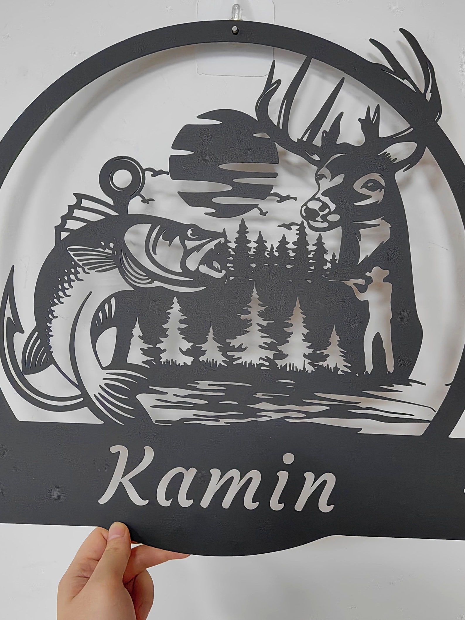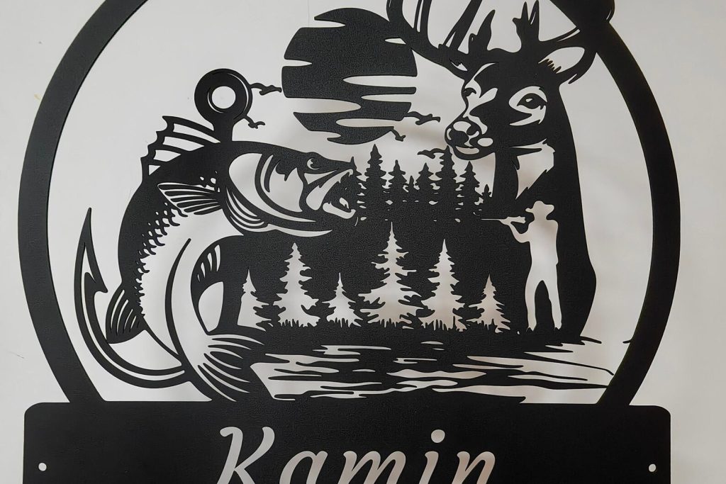 -Custom Deer And Fishing Metal Wall Art-