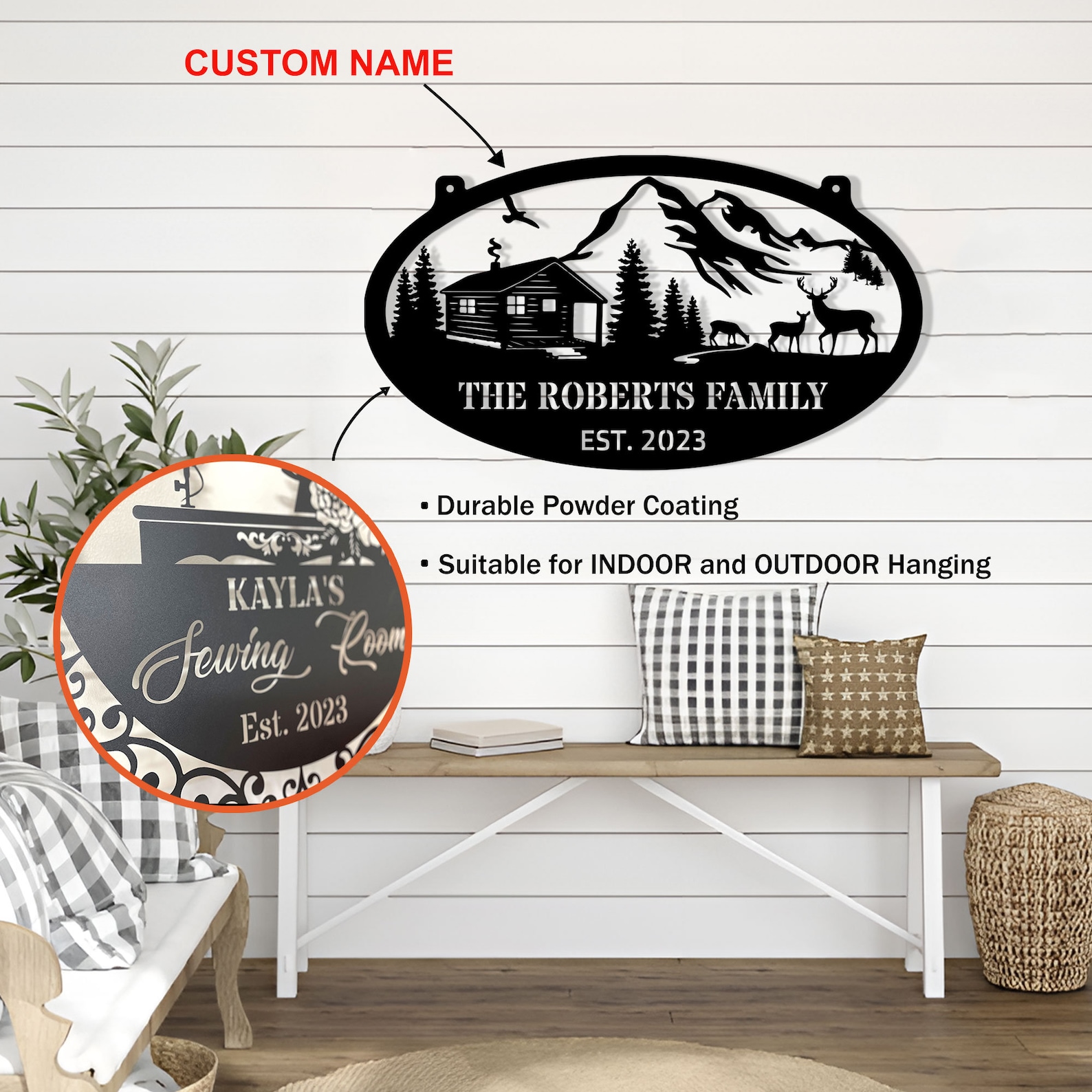 Personalized Deer Metal Cabin Sign,Outdoor Hunter Hunting Head Antlers,Customized Family Name Door Hanger,Gift for Dad, Husband,Hunter Gifts