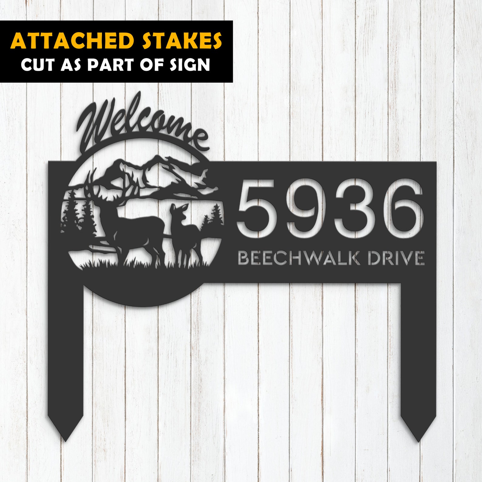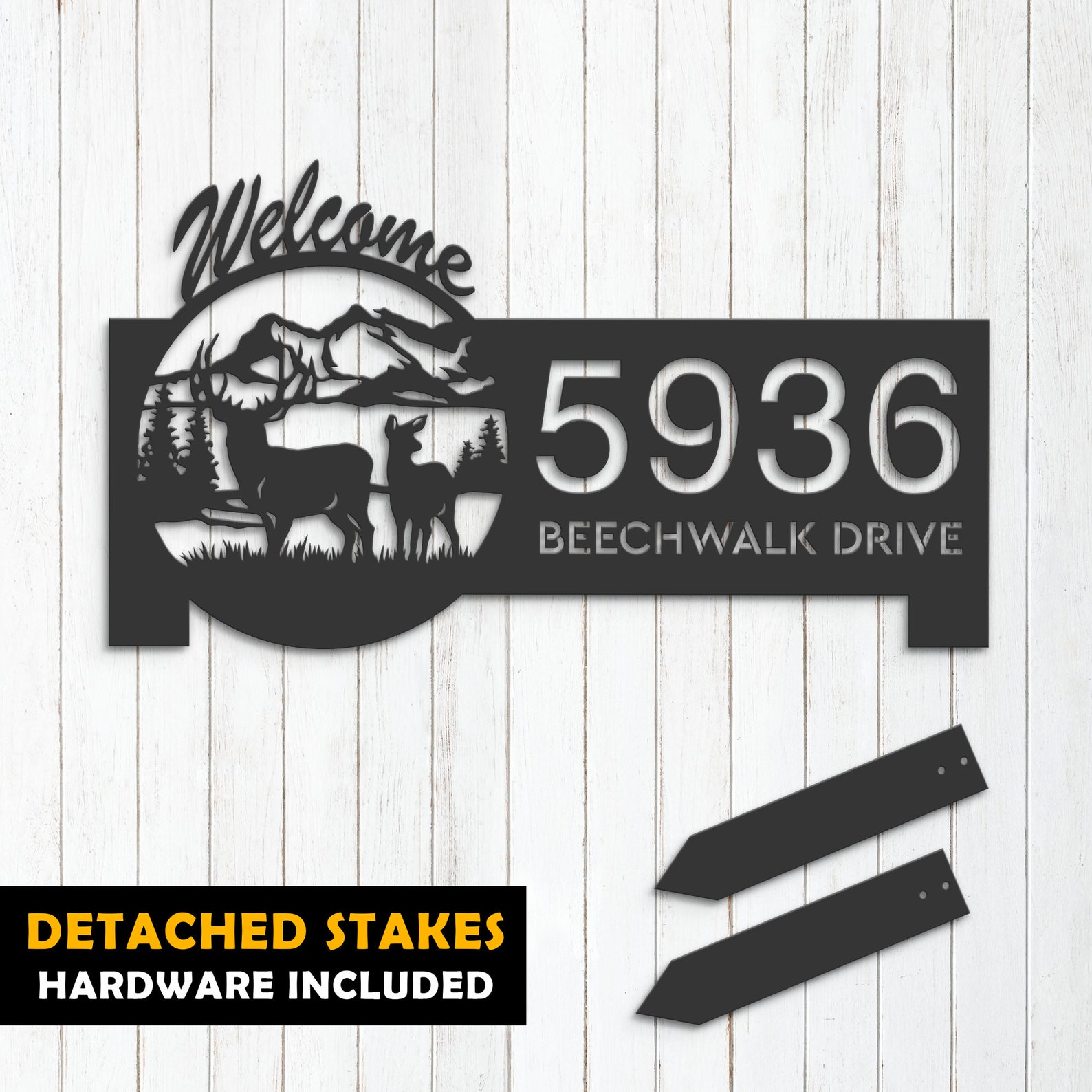 Introducing our custom metal address sign, available in 5 size options and 4 different styles to suit your individual needs. With our address sign, you can make a statement while also ensuring that visitors can easily locate your home or business.