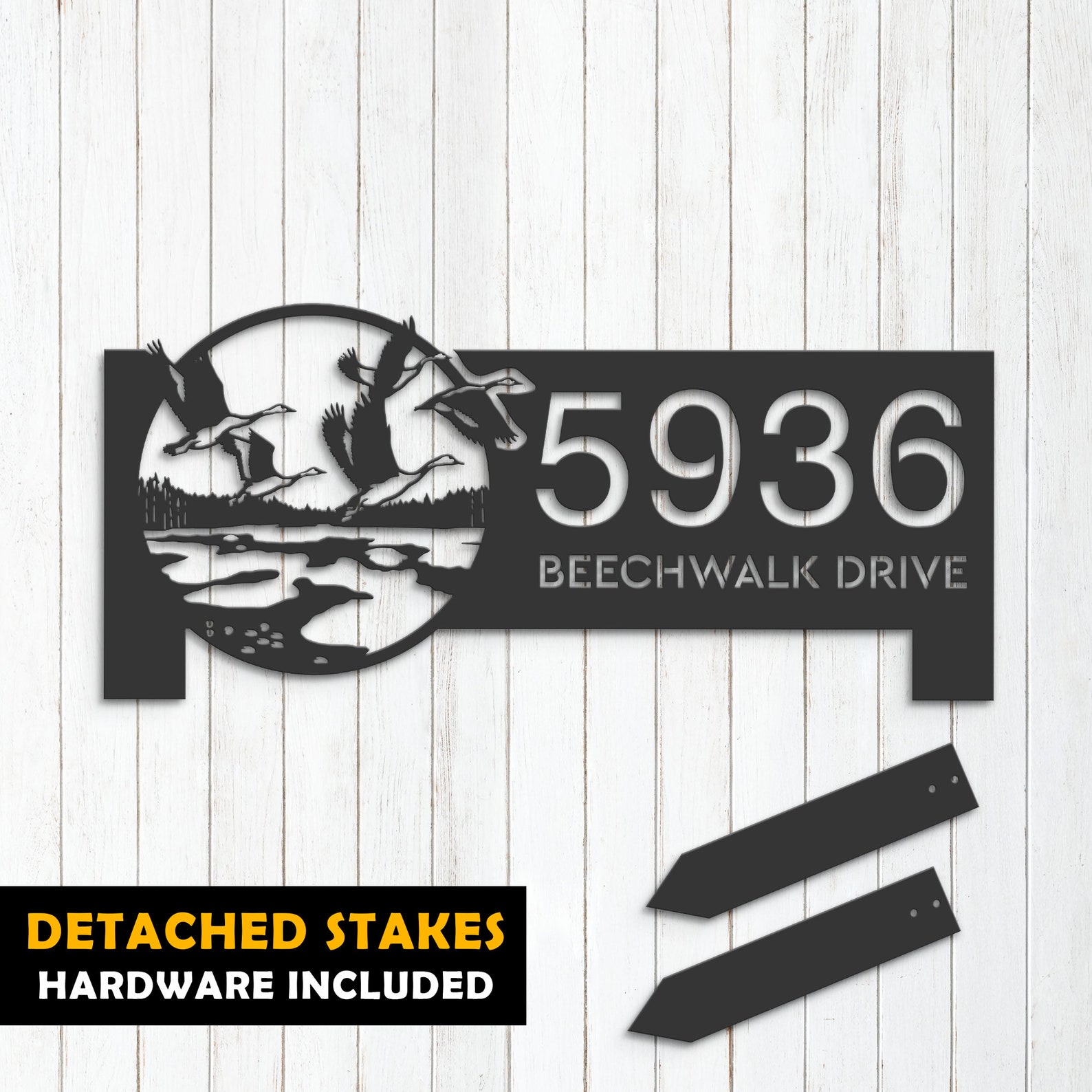 Introducing our custom metal address sign, available in 5 size options and 4 different styles to suit your individual needs. With our address sign, you can make a statement while also ensuring that visitors can easily locate your home or business.