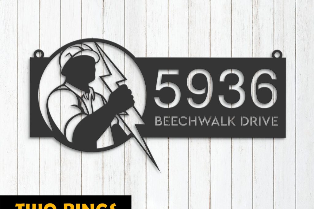 Be the first to review “Personalized Electrician Metal Address Sign – Lineman Yard Plaque”