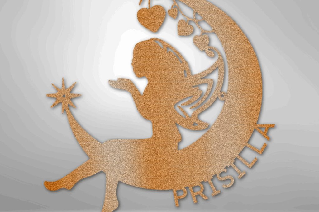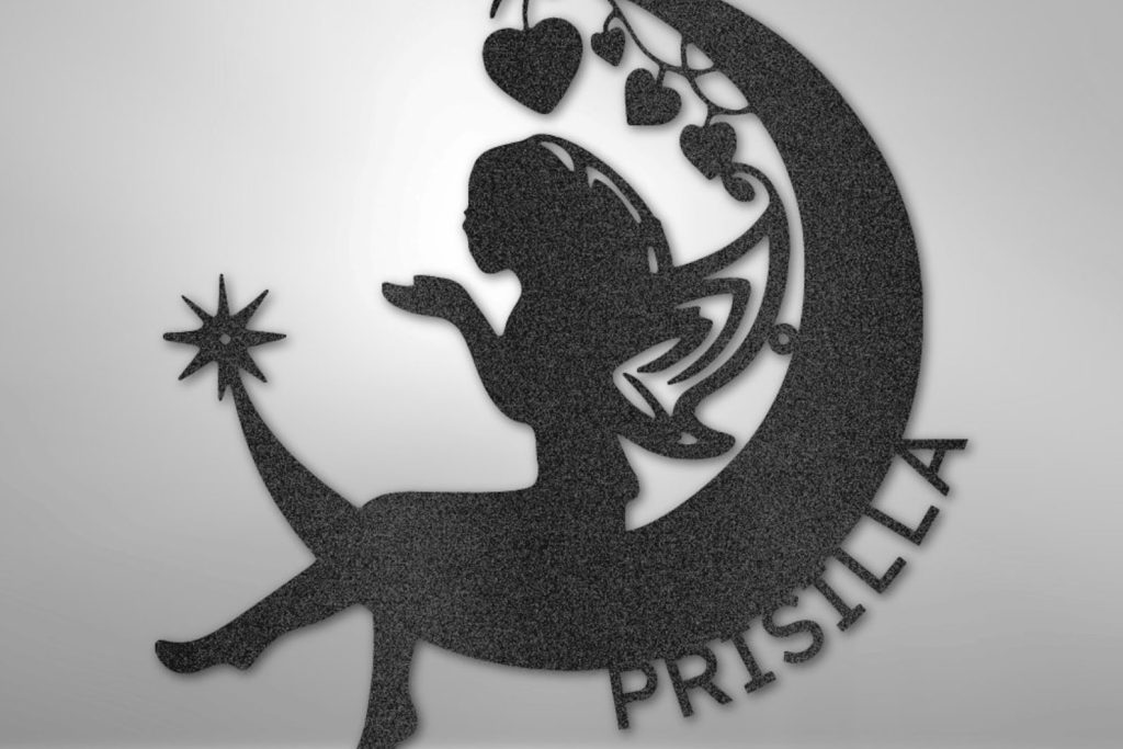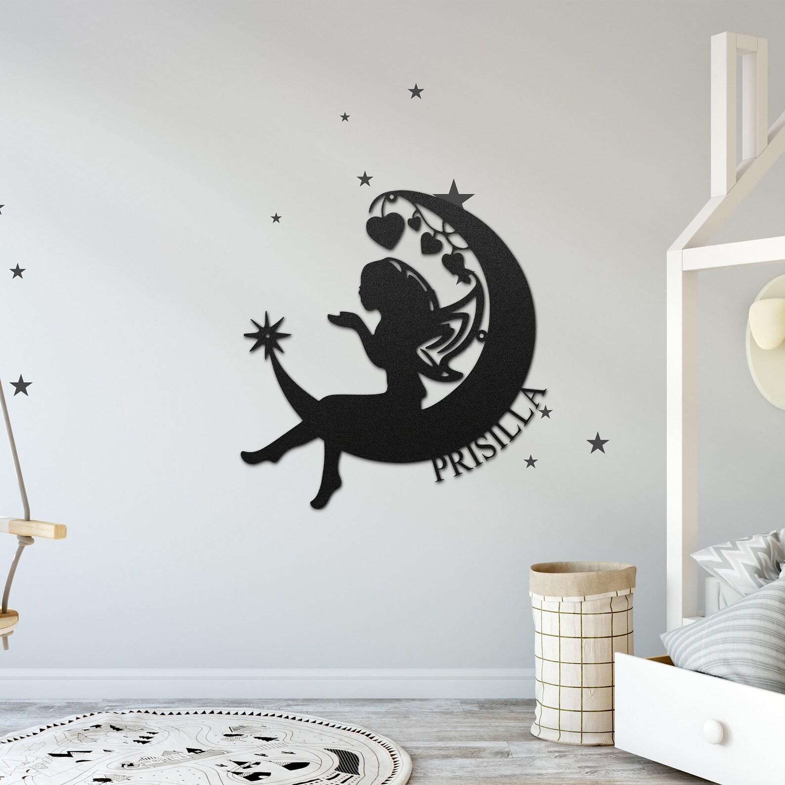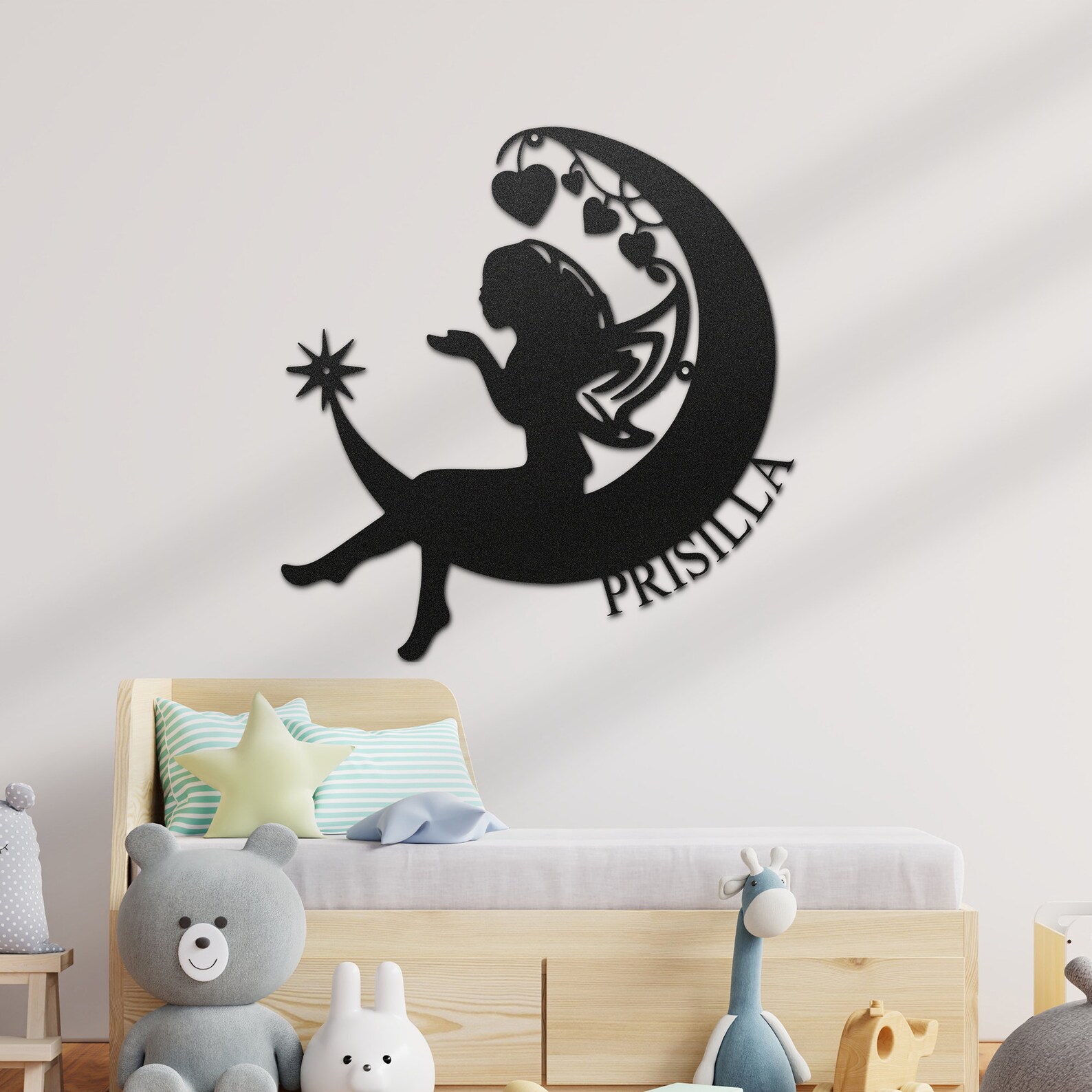 – This personalized Metal Fairy Moon Sign is the perfect piece to decorate your kids room or personal space! This piece will look impressive anywhere in your home, inside or out!