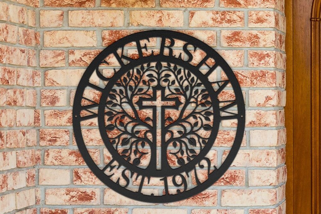 Personalized Family/Business Name Metal Art Sign with a Cross Custom EST Home Decor Housewarming Wedding Anniversary Christian gifts. Designed by BCG, DO NOT COPY.
