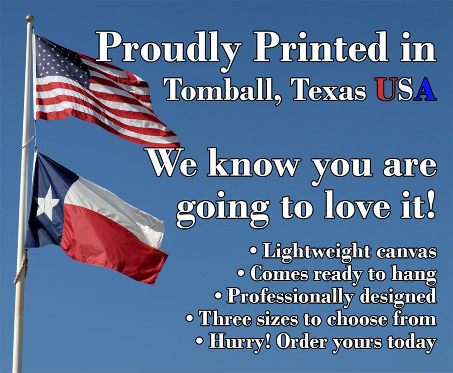 MADE IN AMERICA – All our canvas artwork is hand-stretched by our employees in Tomball, Texas. We take pride in doing the work here and doing it right.