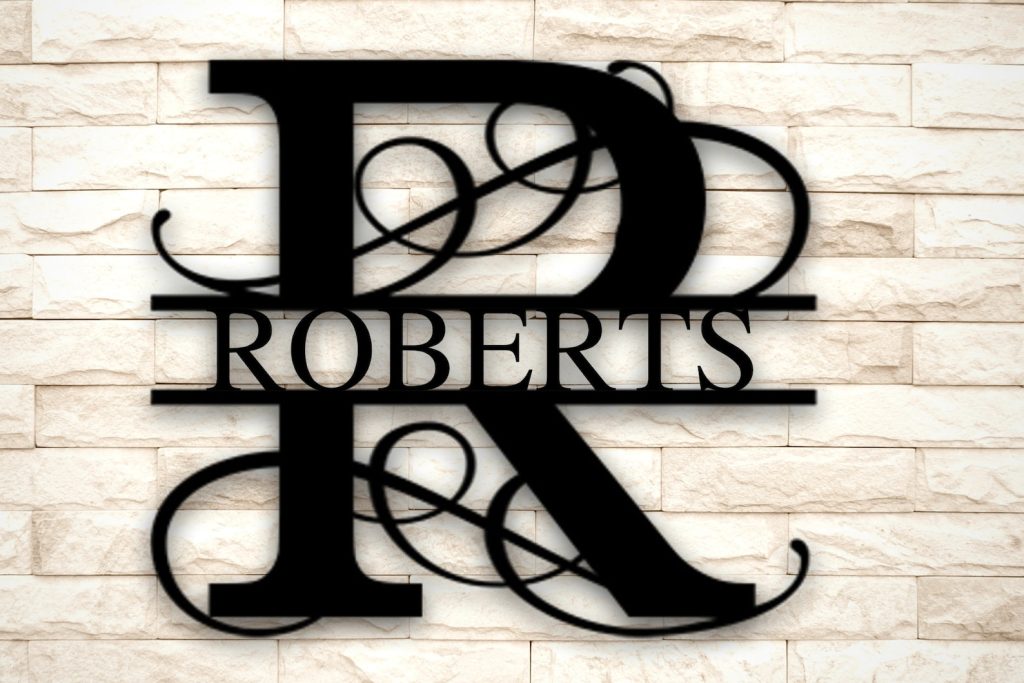Beautiful Metal Split Monogram Sign with your family9;s name!