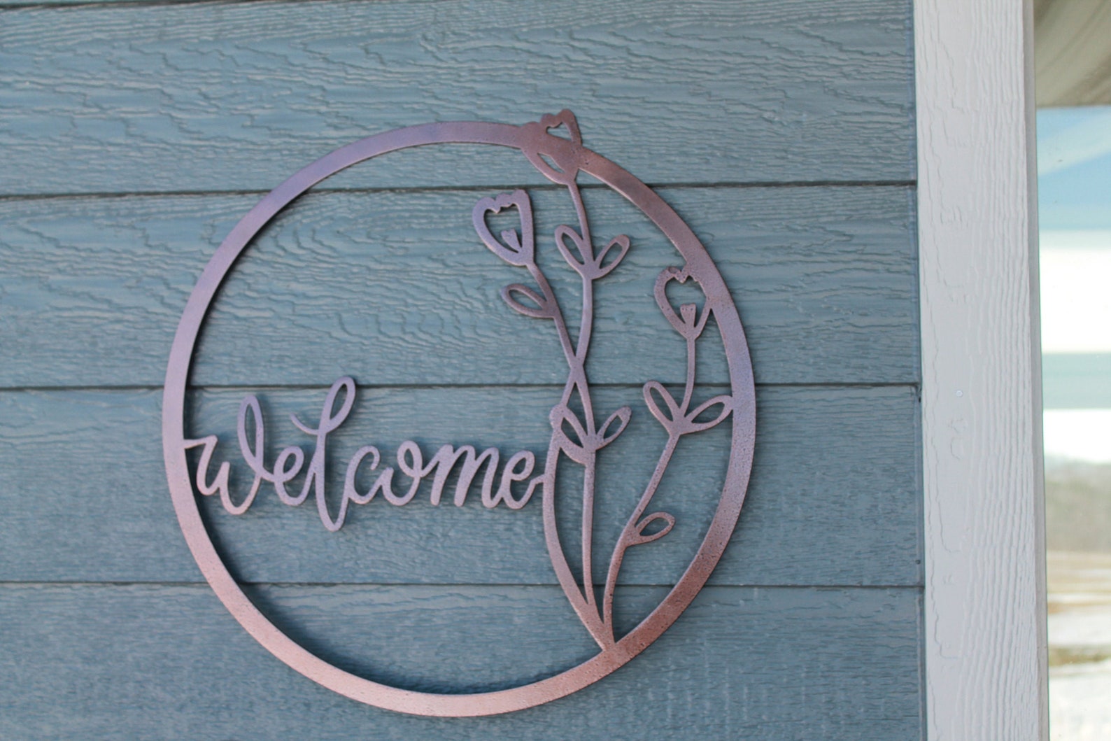 We provide the sign laser cut with your personalizations and powder coated. We do not include the mounting hardware due to many different situations and preferences of sign hanging.