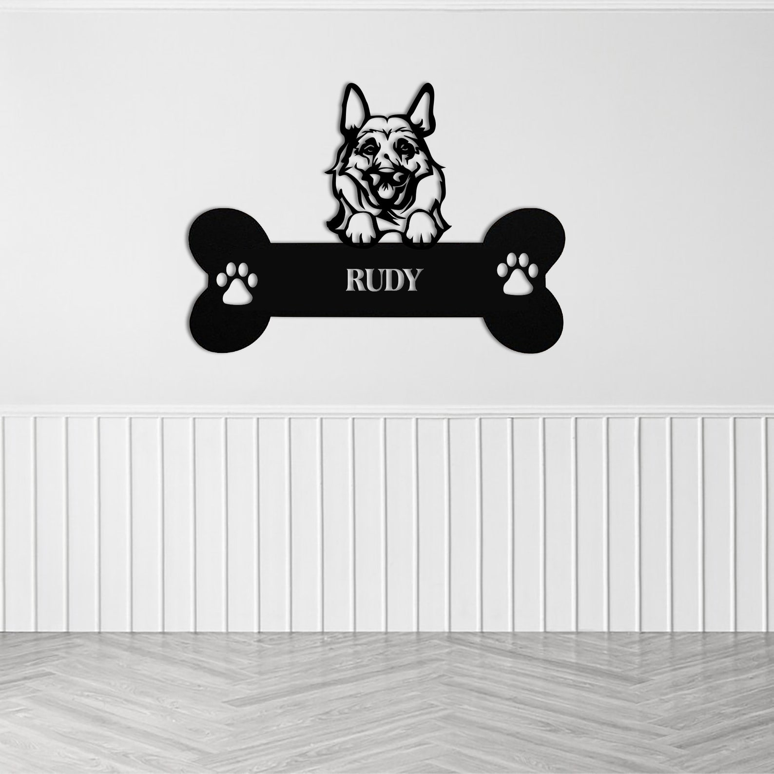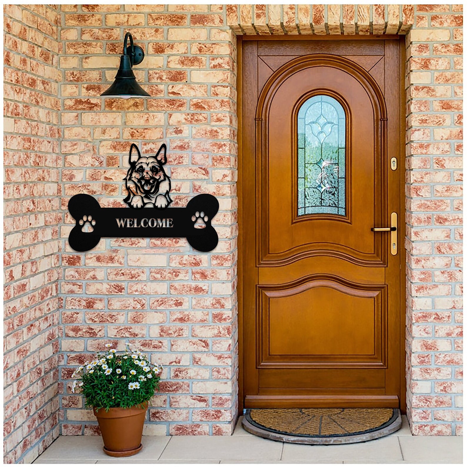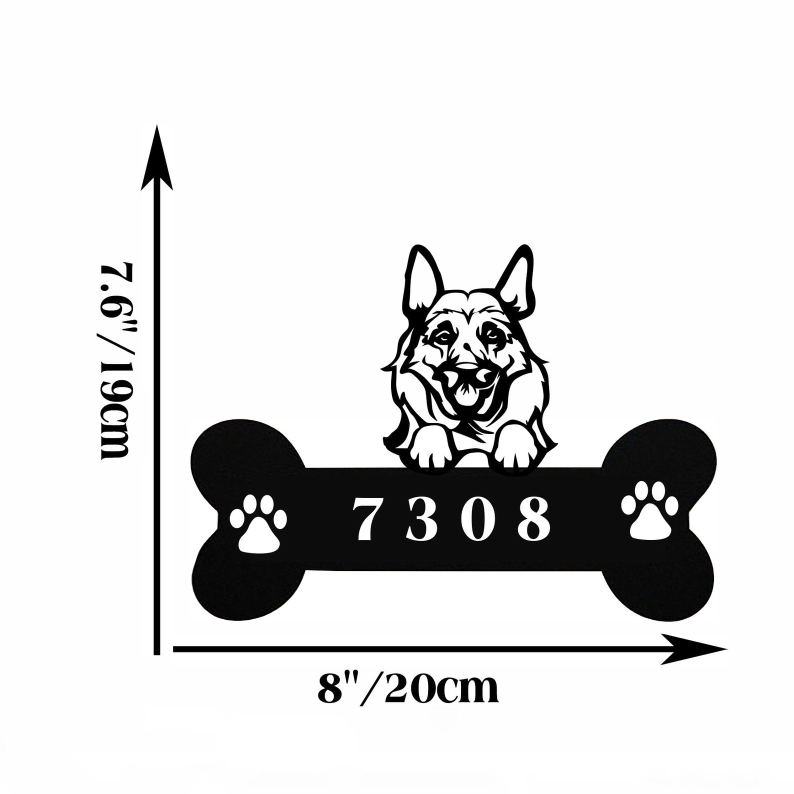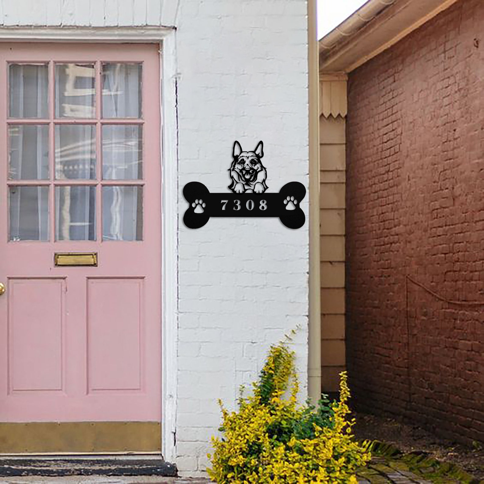 Horizontal Dog Silhouette Address Sign. Made with 14 gauge American made steel and powder coat to help prevent rust and discoloration. Made from high-quality metal, our custom address sign is durable and weather-resistant, ensuring that it will last for years to come. The sign can be customized with your address or any other text that you choose, making it a truly unique and personalized addition to your property. It can be used as a family property to last for generations.