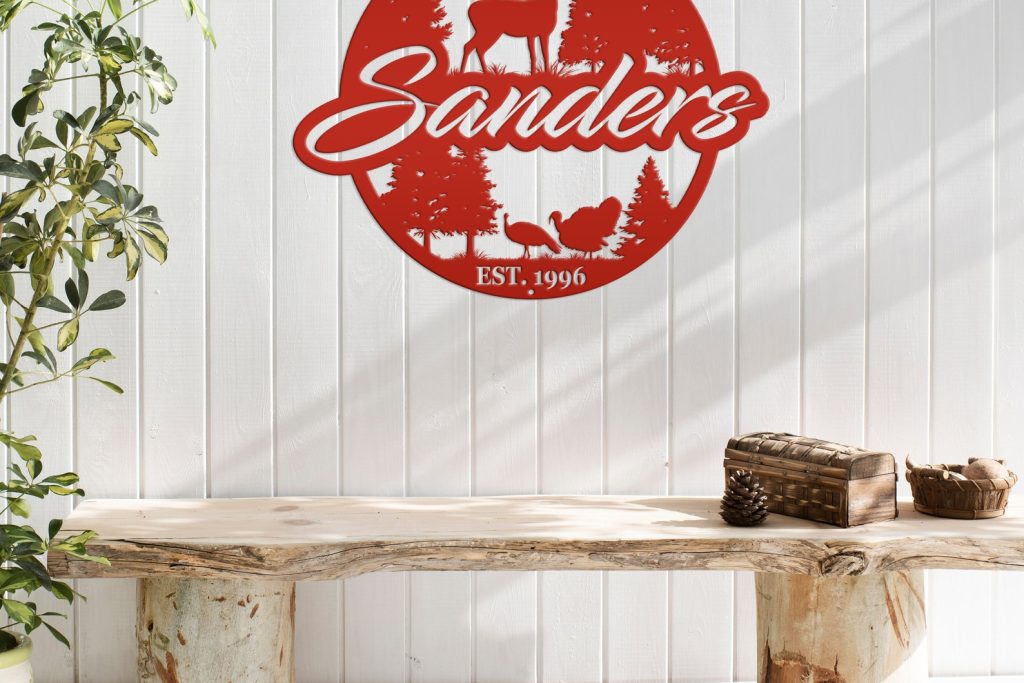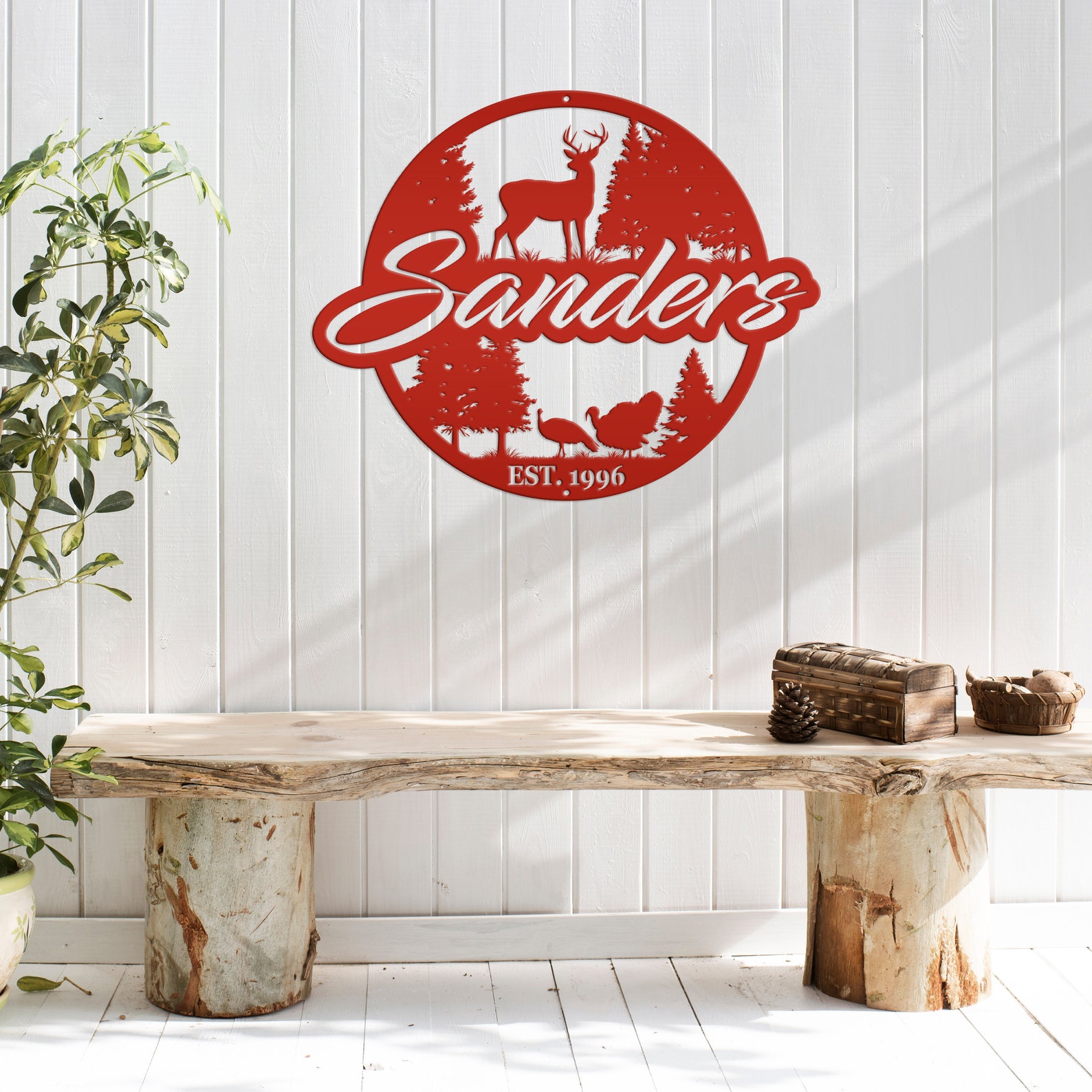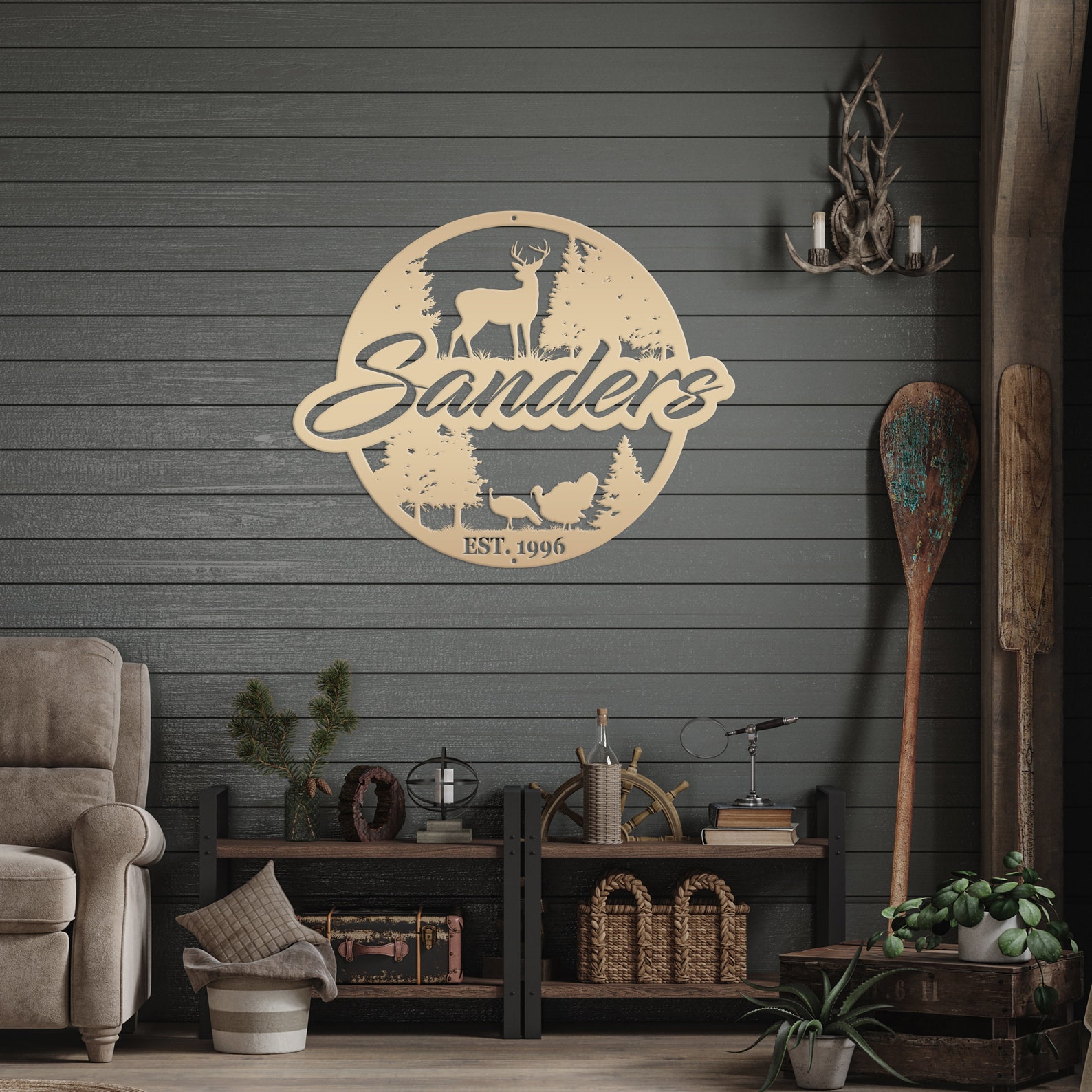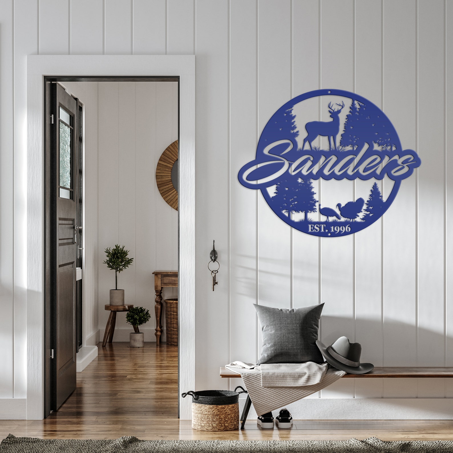 You will love the detail of our Metal Personalized Family Name Sign with Deer and Turkey Outdoor Scene. This sign would be a great addition to add home, cabin, or lodge. Makes a great gift for the hunter in your life!