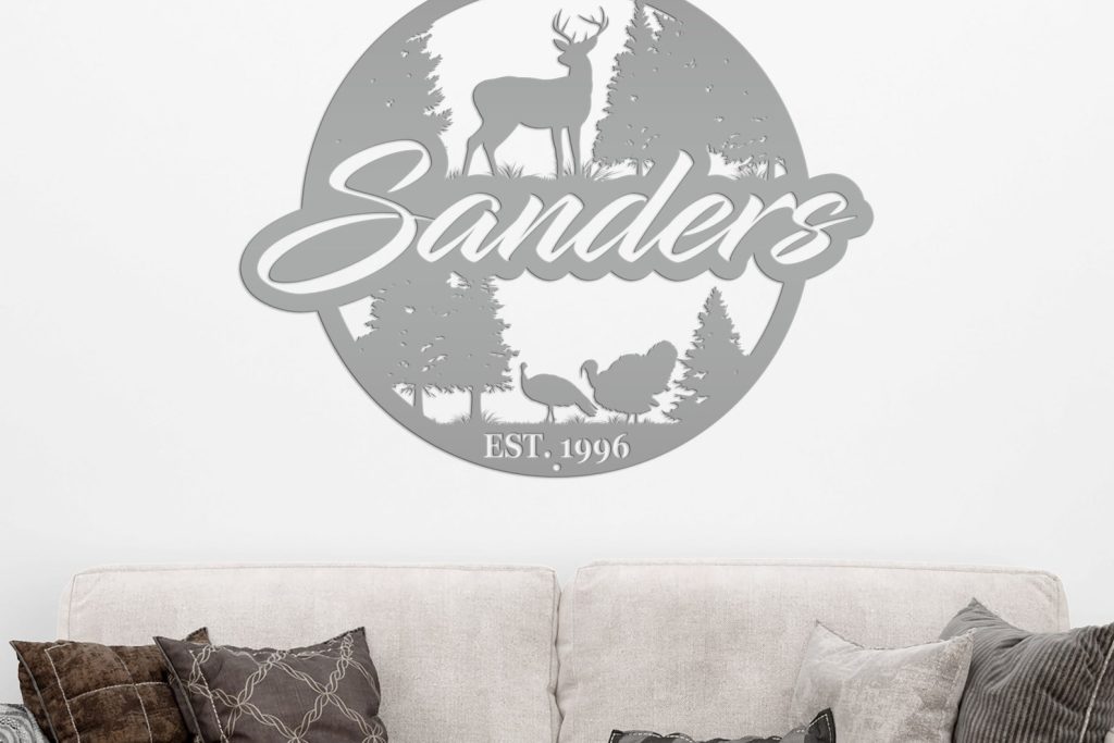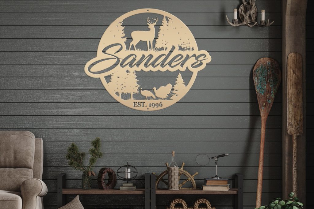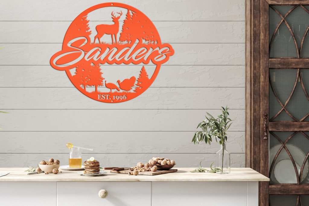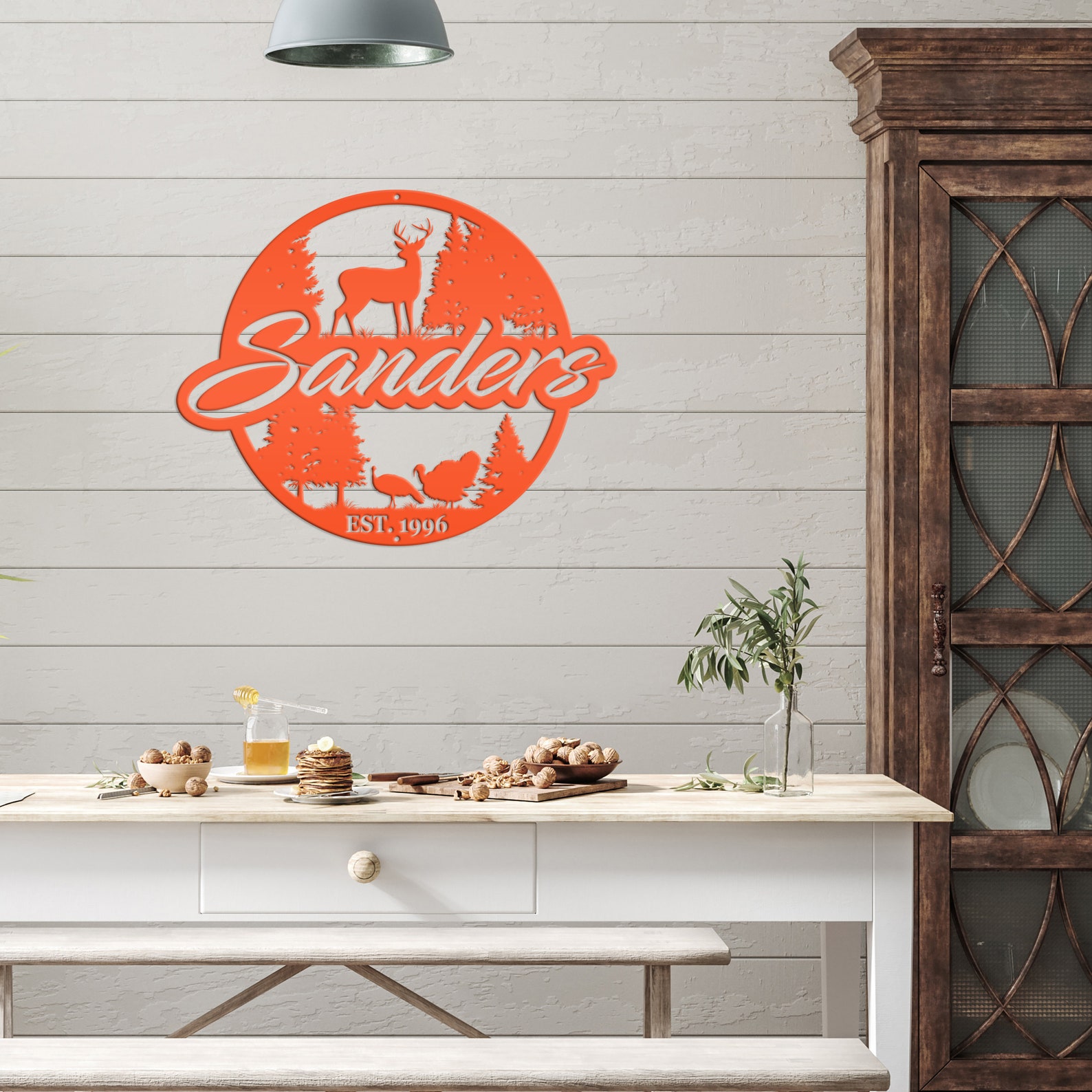 Be the first to review “Personalized Family Name Sign – Deer and Turkey Metal Art”