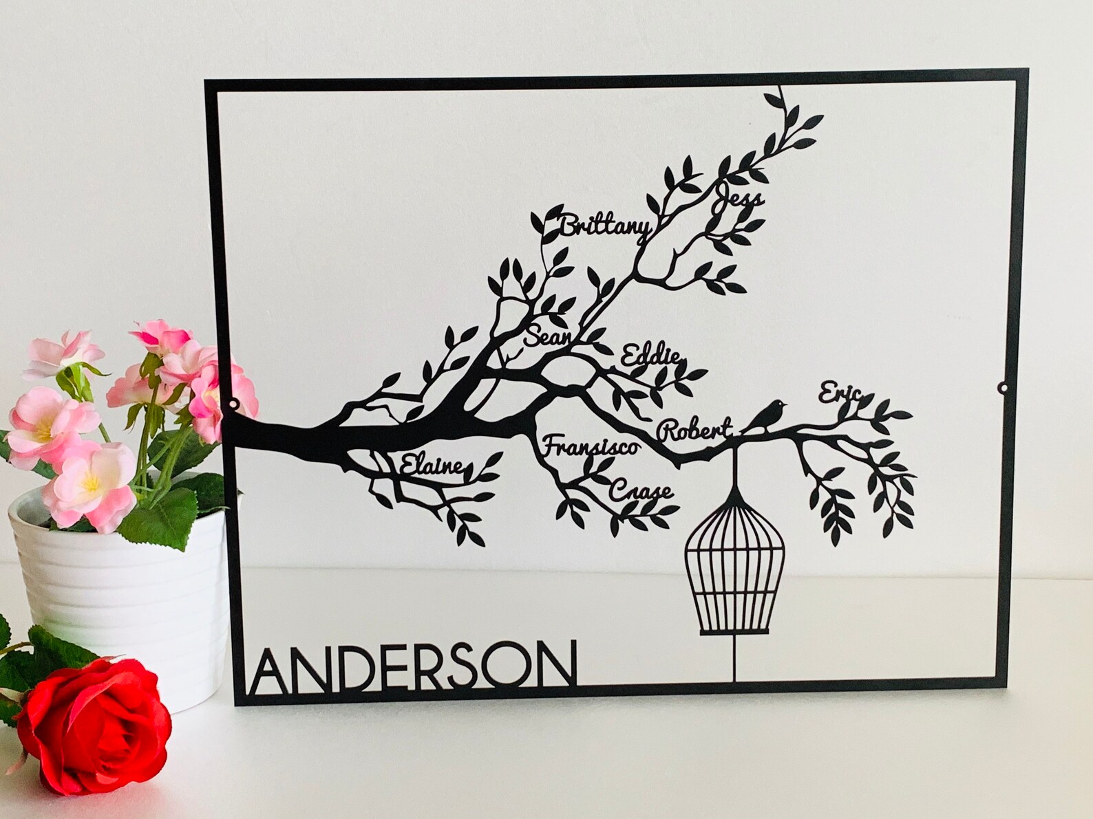 Be the first to review “Personalized Family Tree Metal Sign with Birdcage”