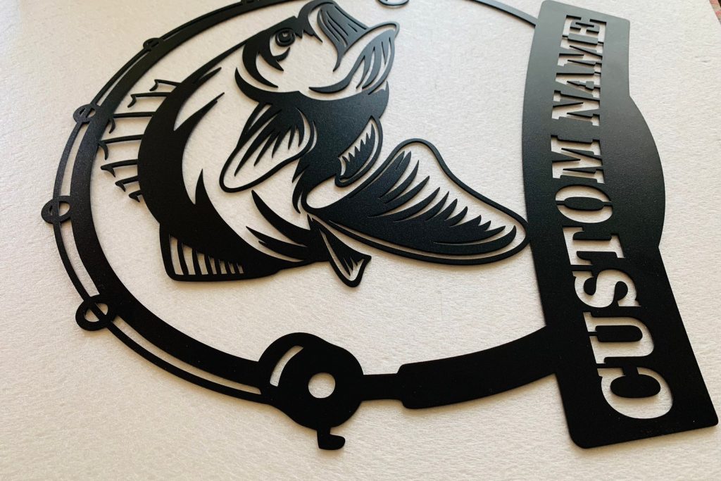 Personalized Fish & Rod Metal Sign