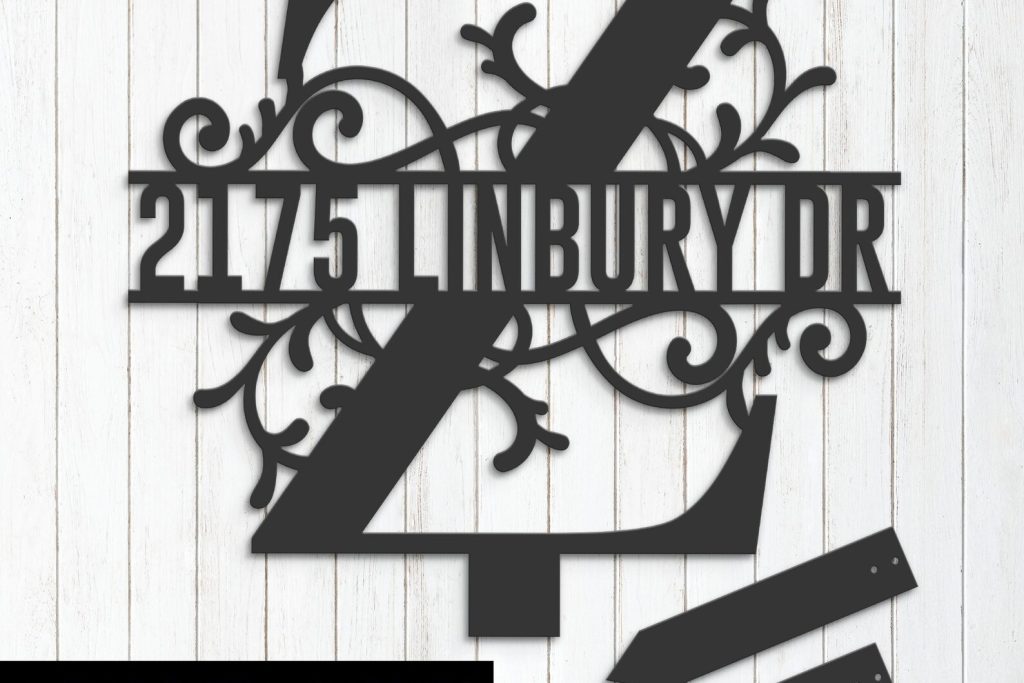Personalized Floral Split Letter Z Metal Address Sign