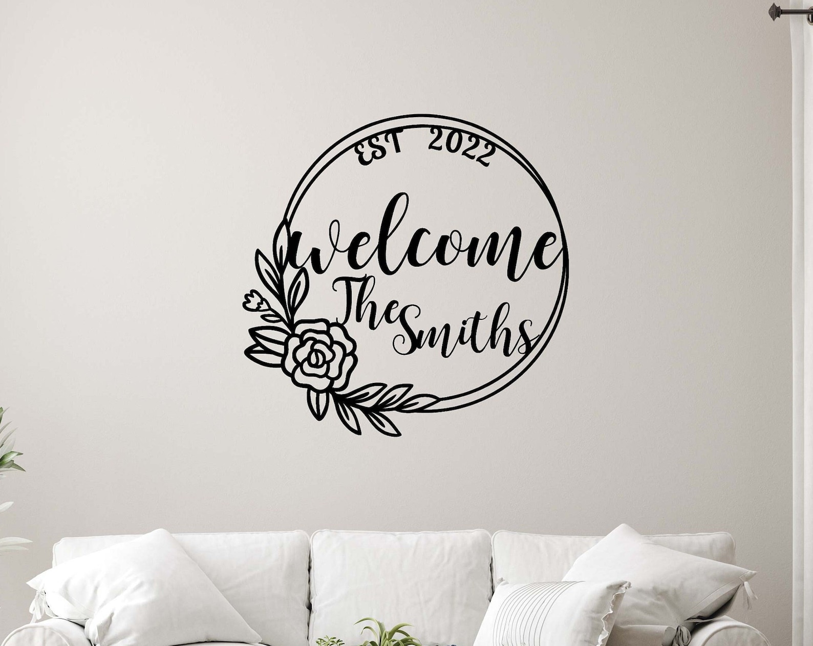 Personalized Welcome Floral Metal Sign with Established Date