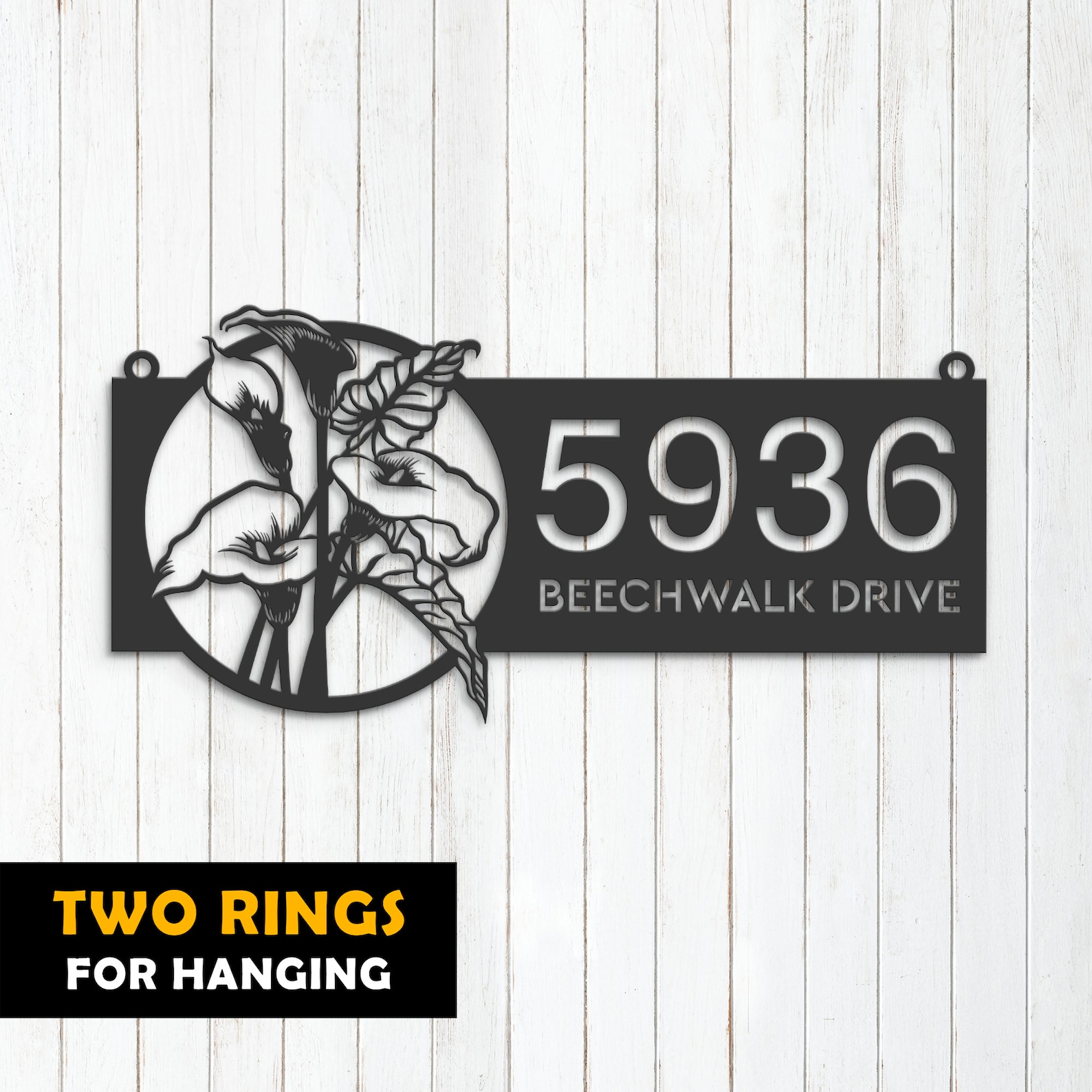 Additionally, our address sign comes in four different styles to ensure that it meets your needs. The mounting holes style is perfect for those who want to attach the sign directly to their building. Rings for hanging are great for those who want to hang the sign from a fence or wall. The attached stakes style is perfect for those who want to place the sign in their lawn, and the bolted stakes style is great for those who want to ensure that the sign is secure and sturdy.