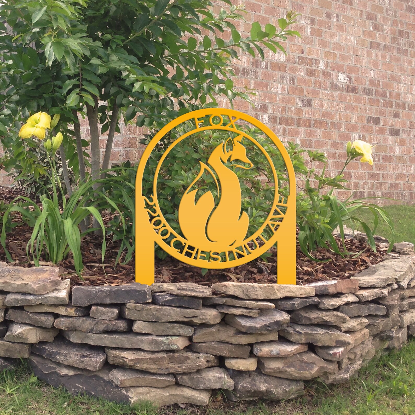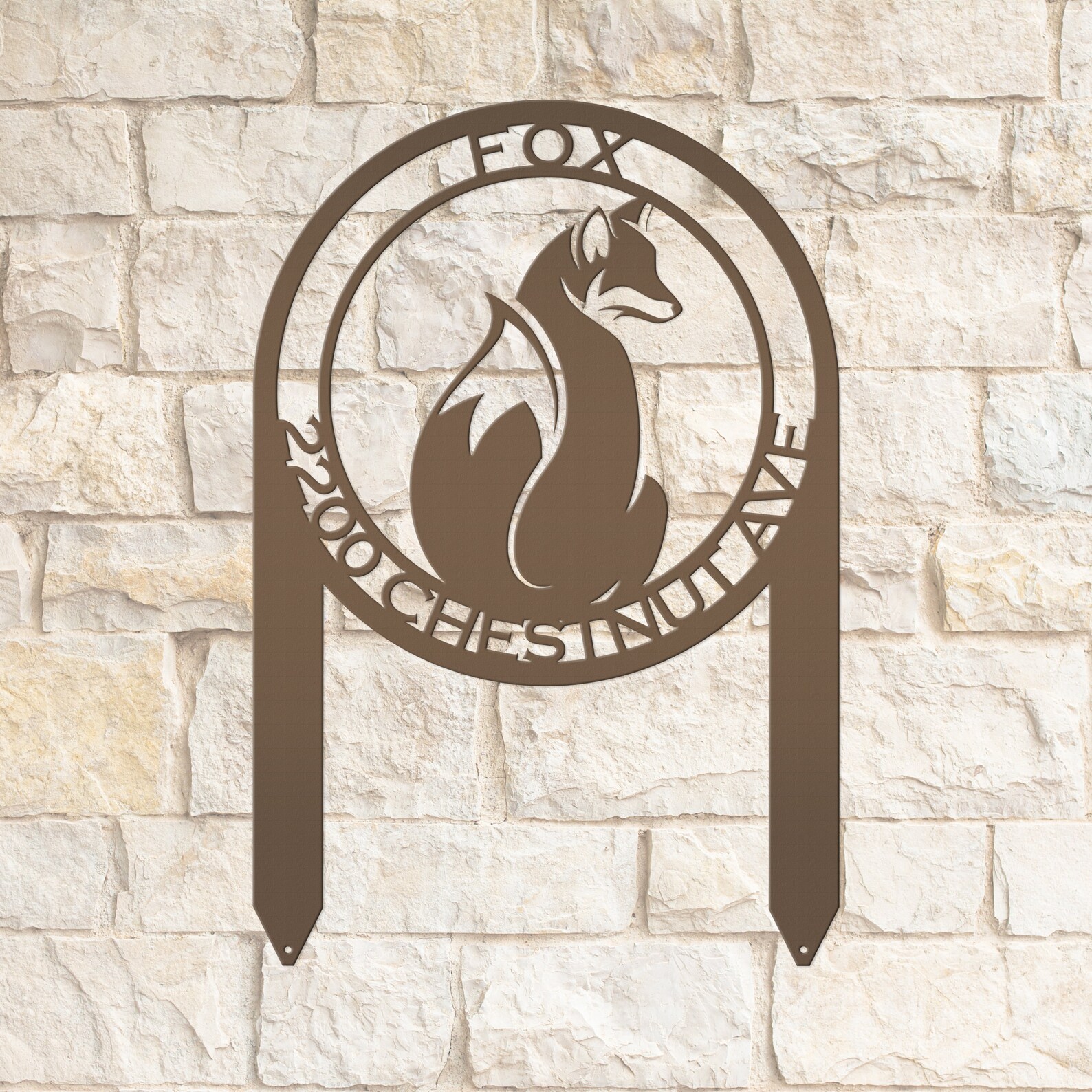 This Personalized Fox Address Metal Yard Stake Sign is the perfect sign to show off your home address. Makes a great housewarming gift. Sizing is for the height of the sign including the stakes. Our yard stake signs are made from 14 gauge steel with a powder coated finish for a long lasting sign indoors or outdoors.