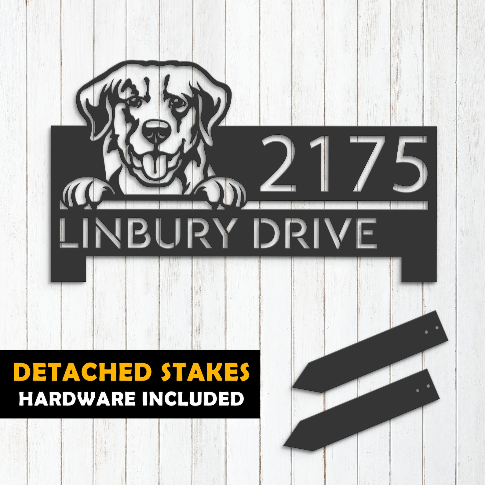 Be the first to review “Personalized Golden Retriever Metal Address Sign – Yard Plaque”