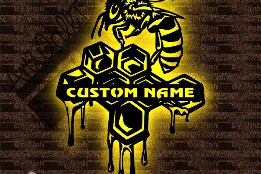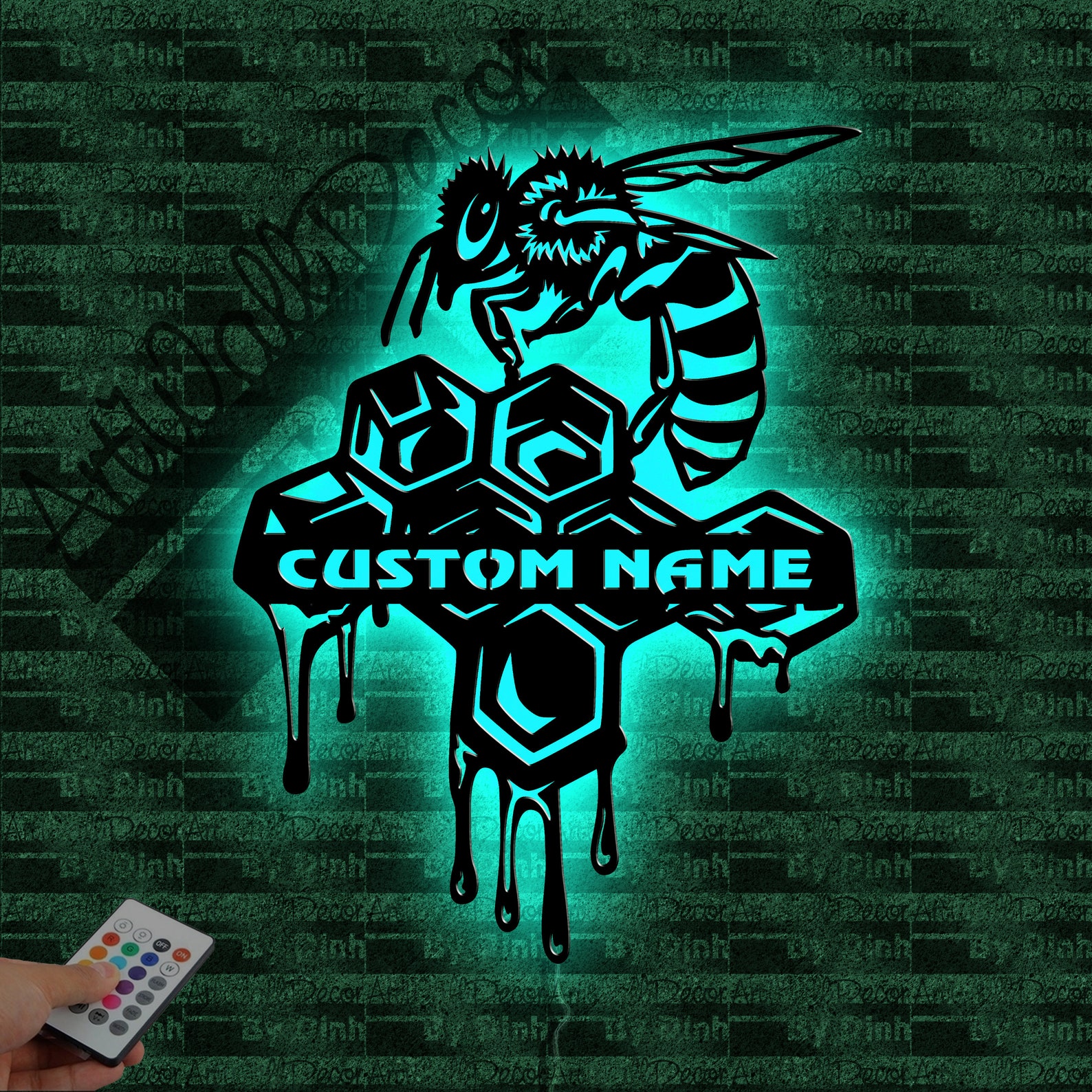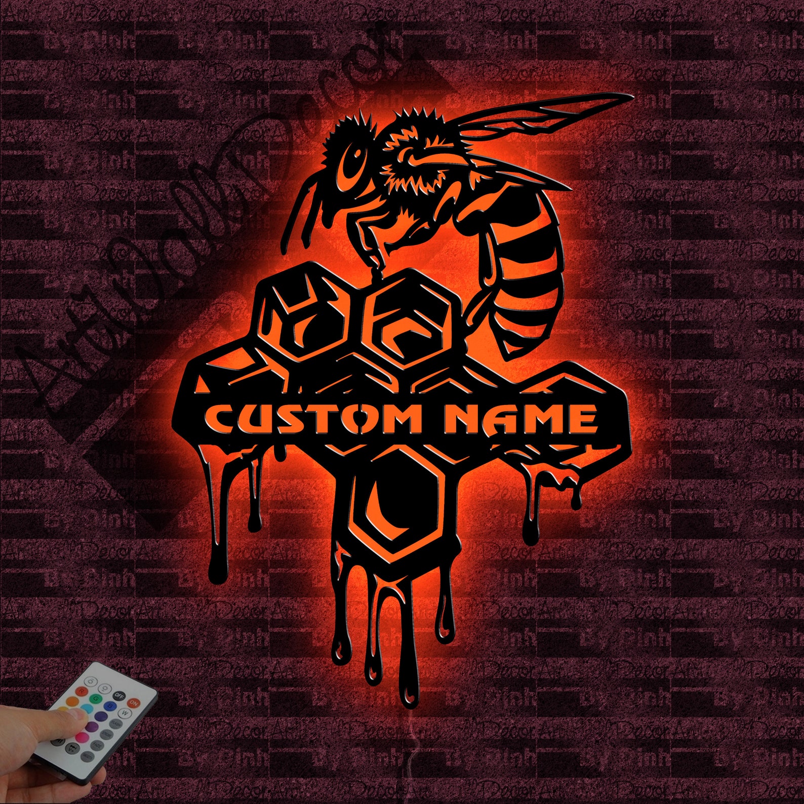 Be the first to review “Personalized Honey Bee Metal Sign with LED – Farm Decor”