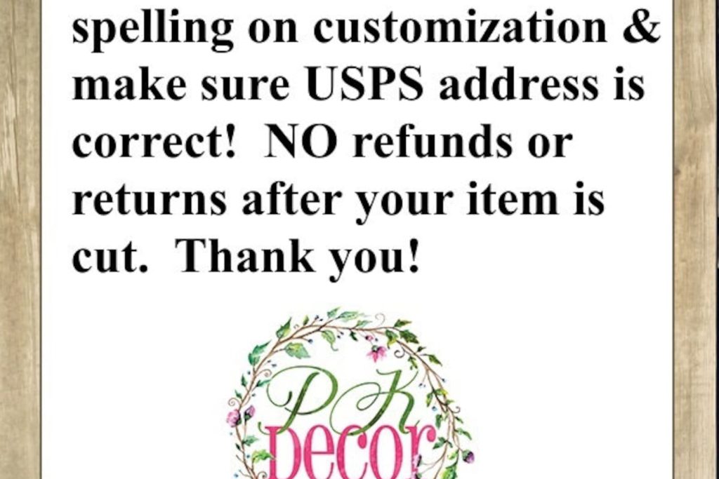 PLEASE STOP and read below about the material you are purchasing and order details!!! (no reimbursements/returns after your item is cut as they are custom) WE START ON YOUR ORDER AS SOON AS YOU PAY! MAKE SURE SPELLING AND USPS ADDRESS ARE CORRECT! We are not responsible for your typos/mistakes! If your order returns to us due to incorrect address you will receive an invoice for reshipment. We have a no return/refund policy.