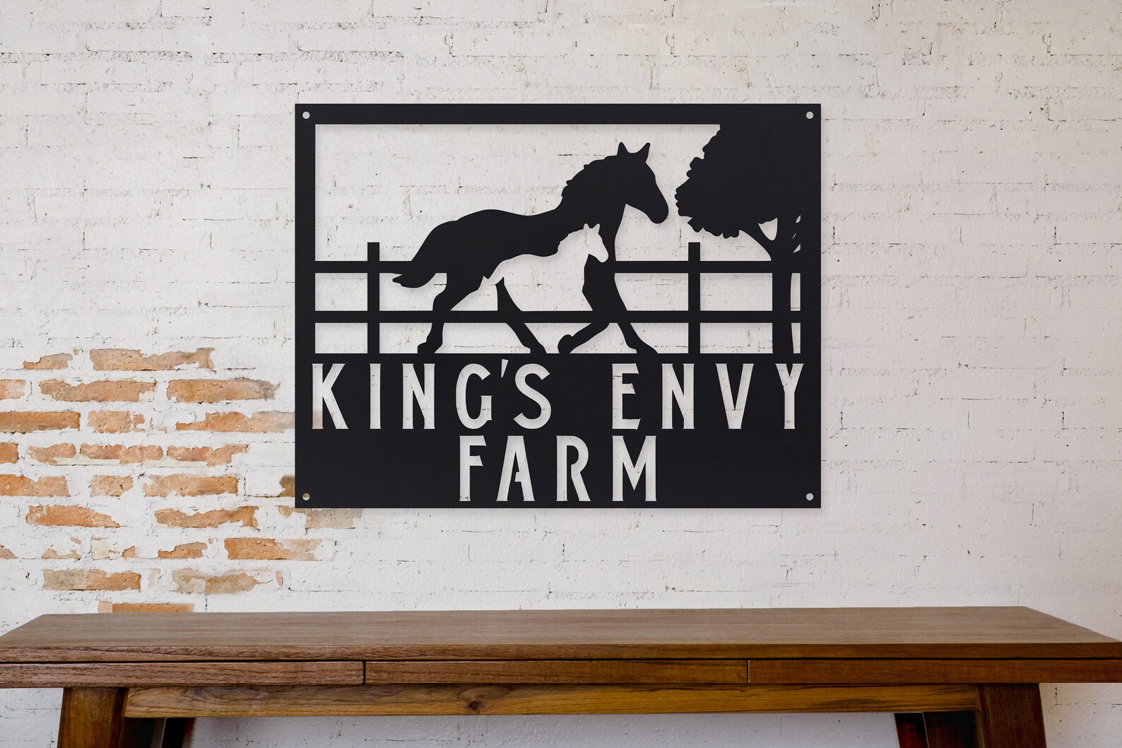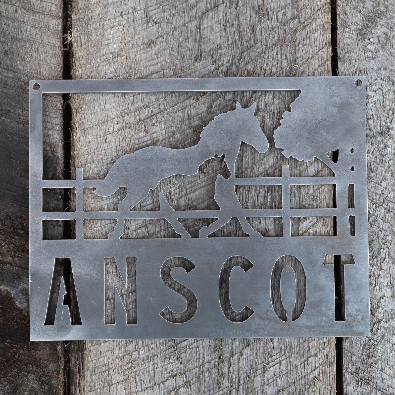 Whether you are crazy about horses or just enjoy the occasional ride, this personalized metal sign is perfect for both horse lovers and owners. This metal horse sign is a great addition to your ranch, stable, barn, or home and will help show how important this part of your life is.