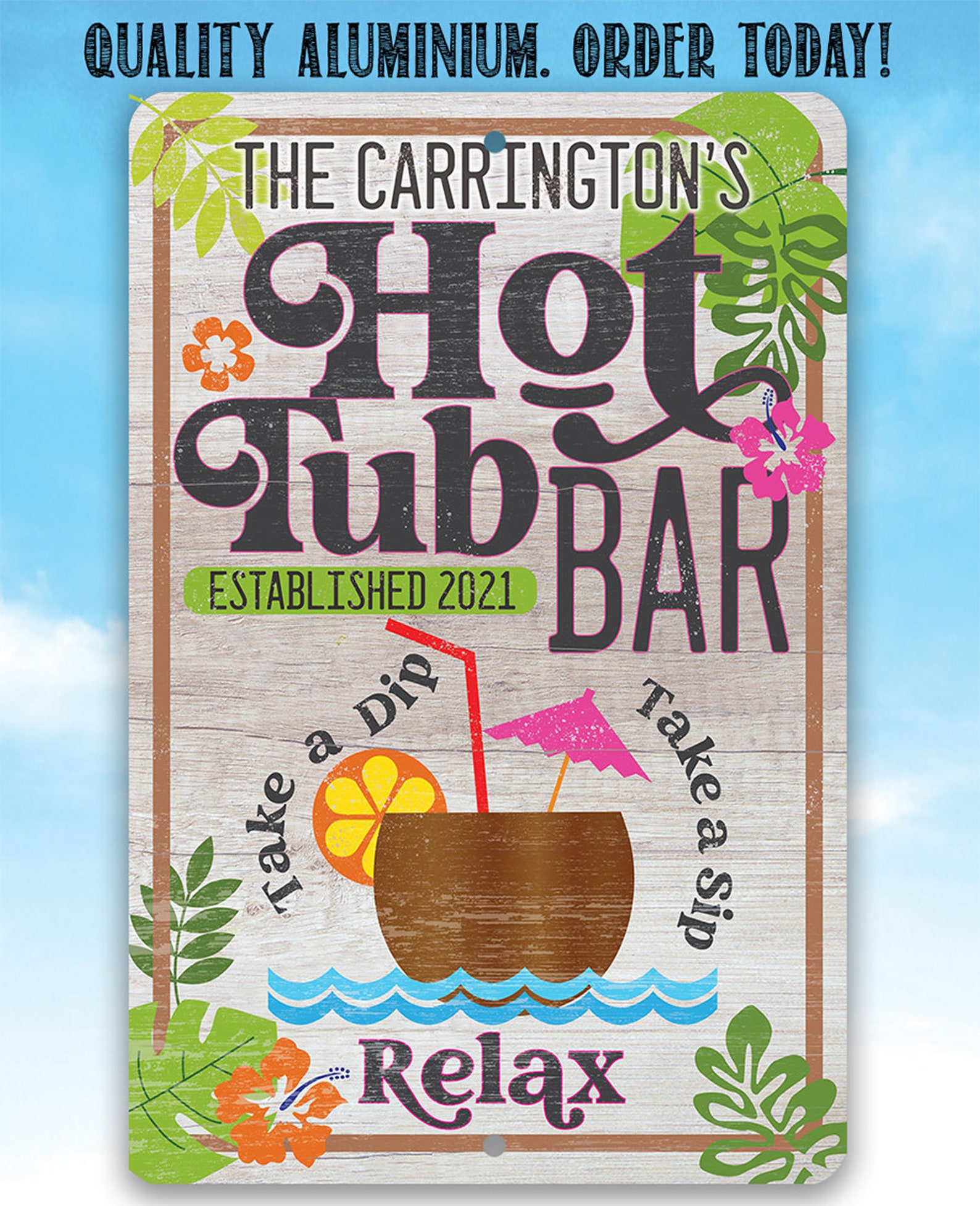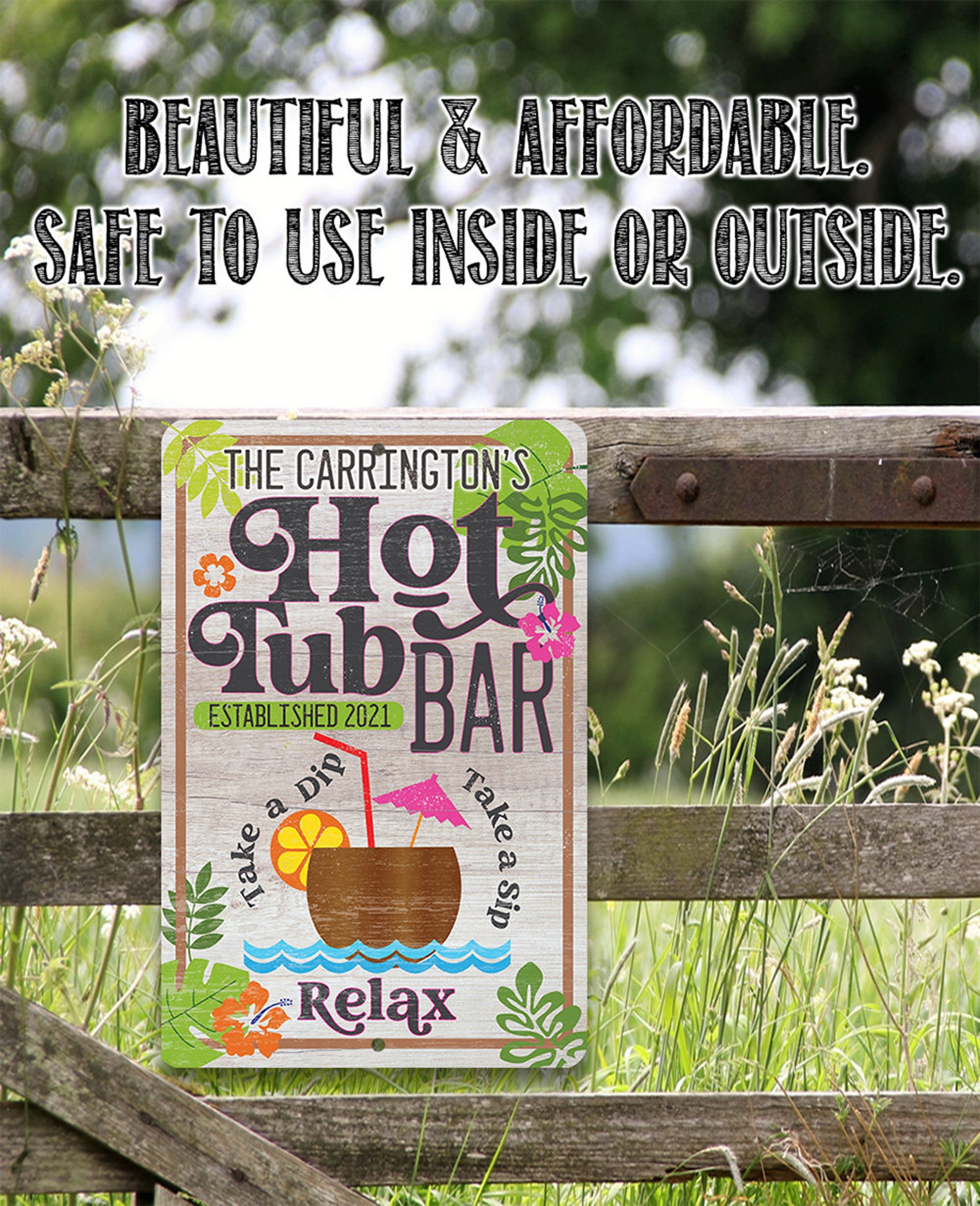 Personalized Hot Tub Bar Metal Sign – 8" x 12" or 12" x 18"Use Indoor/Outdoor – Pool and Spa