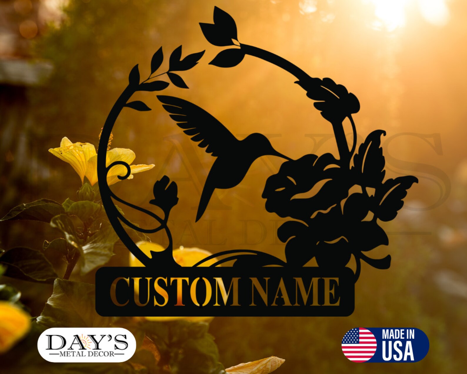 Monogram, garden, Bird, Hummingbird, Metal Sign, Personalized, Wedding Gift, Housewarming Gift, Weatherproof, Metal Wall Art, Outdoor Sign