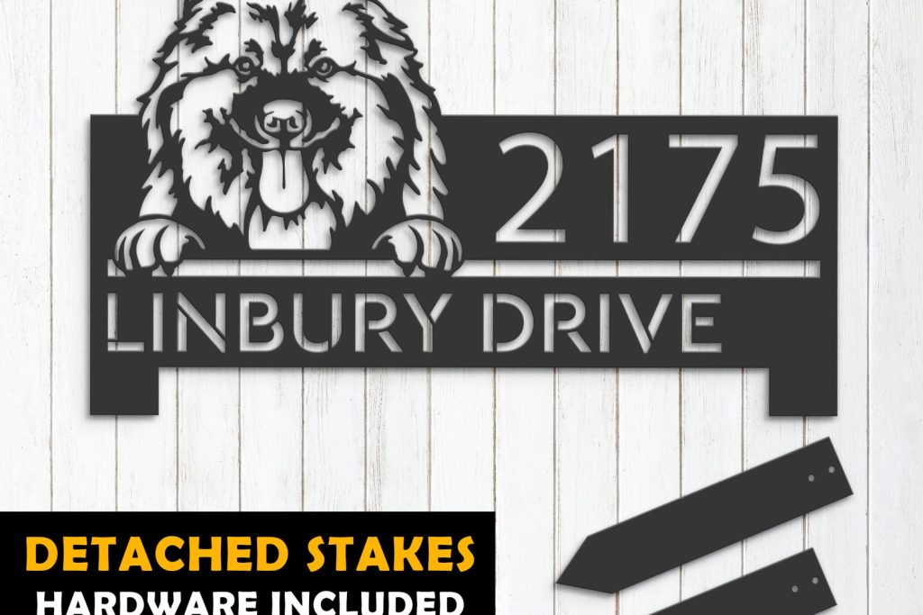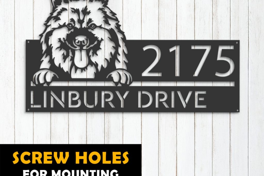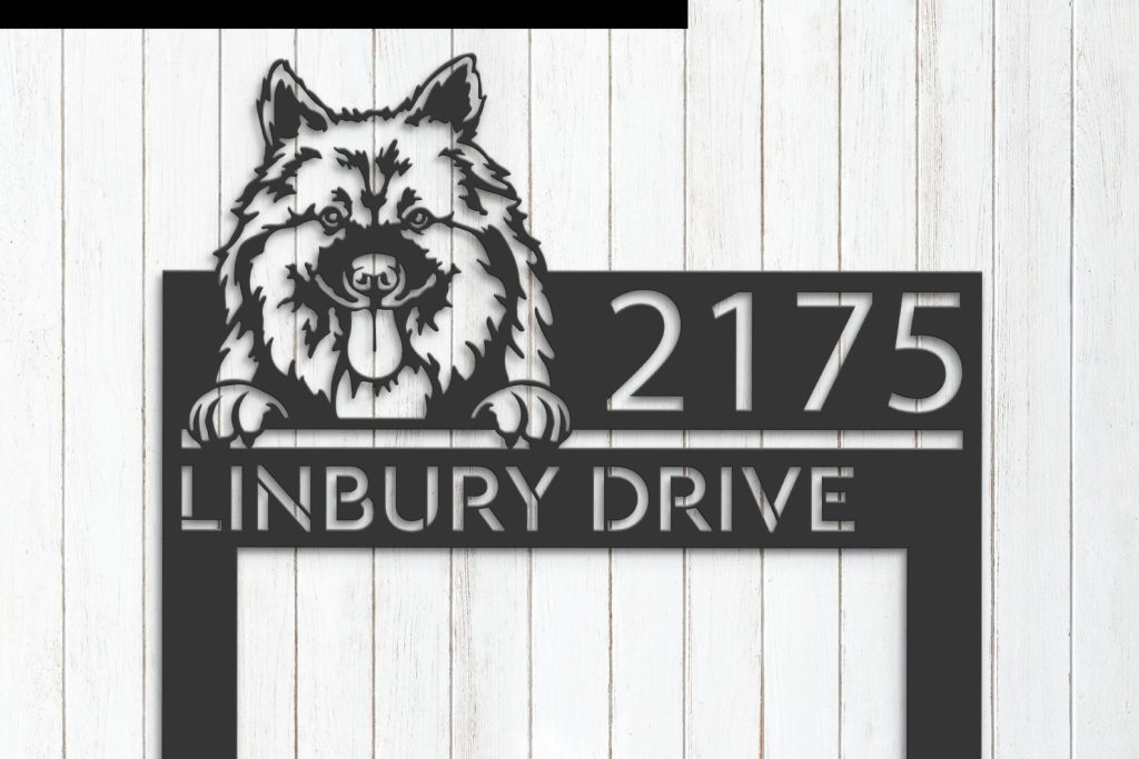 Personalized Keeshond Dog Metal Address Sign