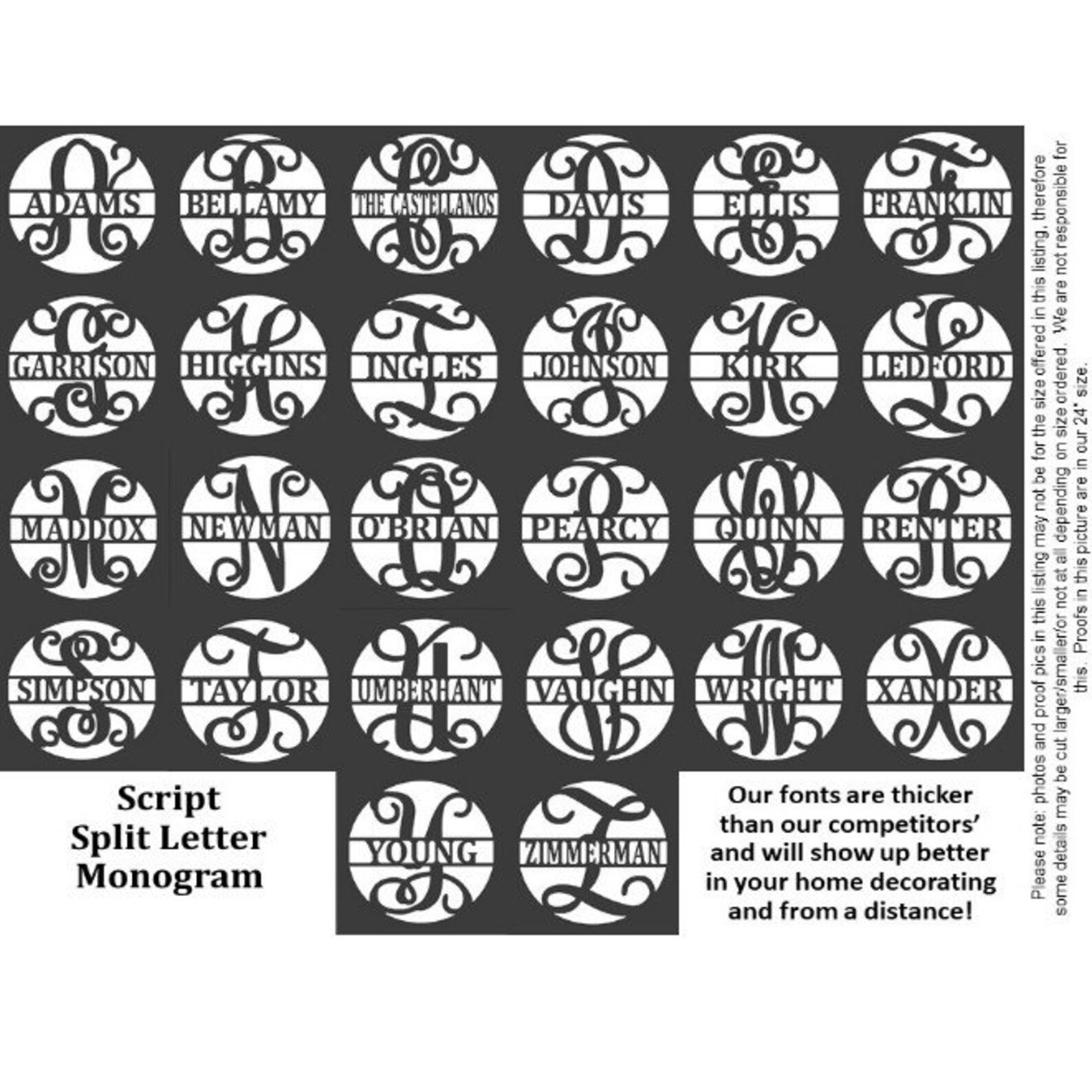 PERSONALIZATION: Only ONE initial in the background and ONLY Year, no dates, for Established year. Leave ONLY customization needed for dcor in image you are purchasing. TOO MUCH CUSTOMIZATION WILL BE LEFT OFF. Leave customization AS YOU WANT IT CUT (Smith Smiths The Smiths Smith Family). NOTE: Names show up nicer with fewer letters, we recommend leaving off "The" when possible. We are NOT responsible for typos or grammatic errors you make. For names with 2 capital letters it will be cut as follows unless you specify differently in order LeBeau will be cut LeBEAU in sign. Double last names – we cannot do a hyphen in the middle.
