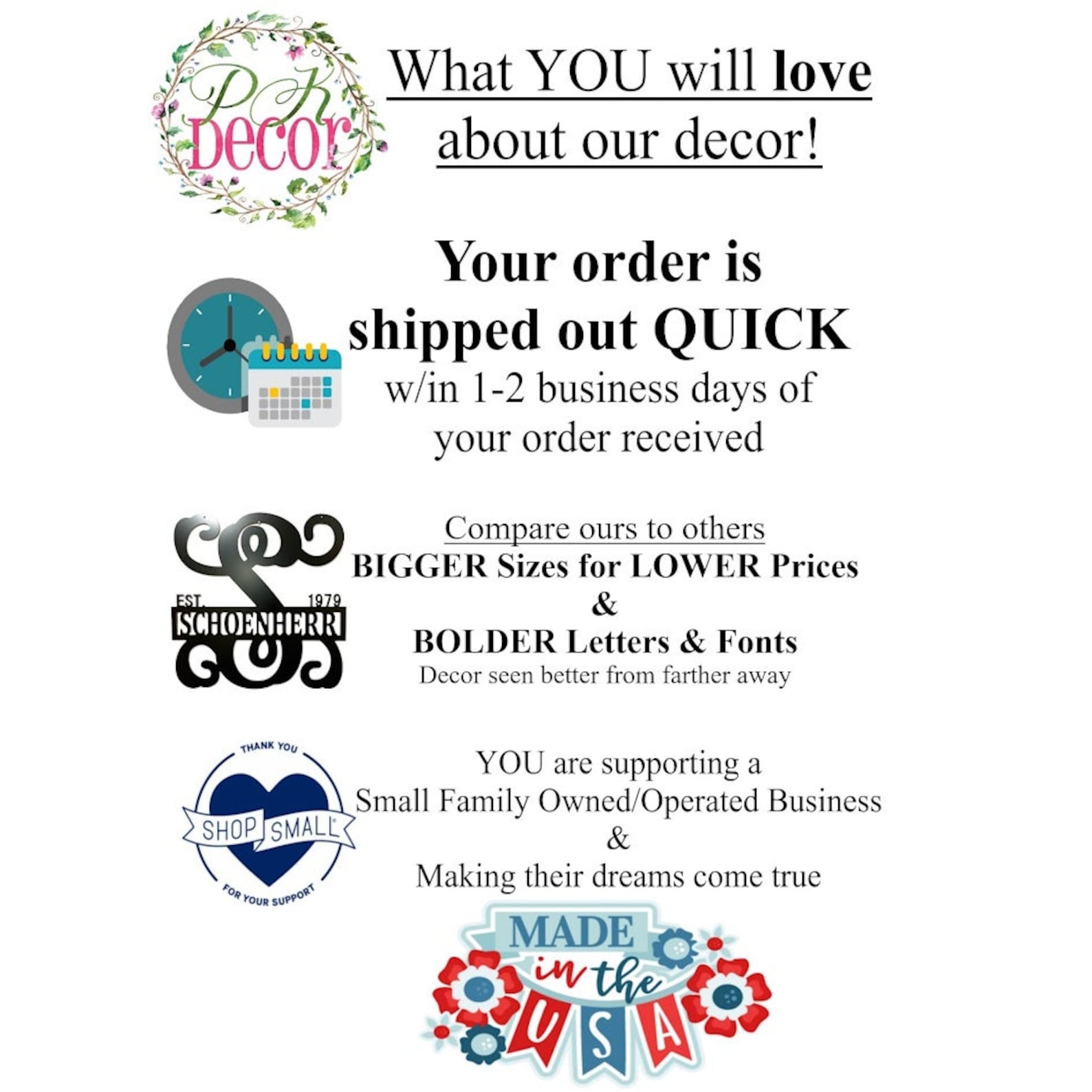 You wont beat our quick delivery! We dont buy from a wholesaler like our competitors! Your dcor is cut here in our home and shipped out QUICKLY! Our turnaround times are up to date on our orders. Free shipping with our orders ships by USPS Priority 2-3 day PLEASE NOTE due to Covid, USPS has been seeing significant delays in some areas and they are not backing up their shipments or delivery dates. By purchasing this item you are releasing us from any delivery delays, complications, or damages by USPS during shipment.