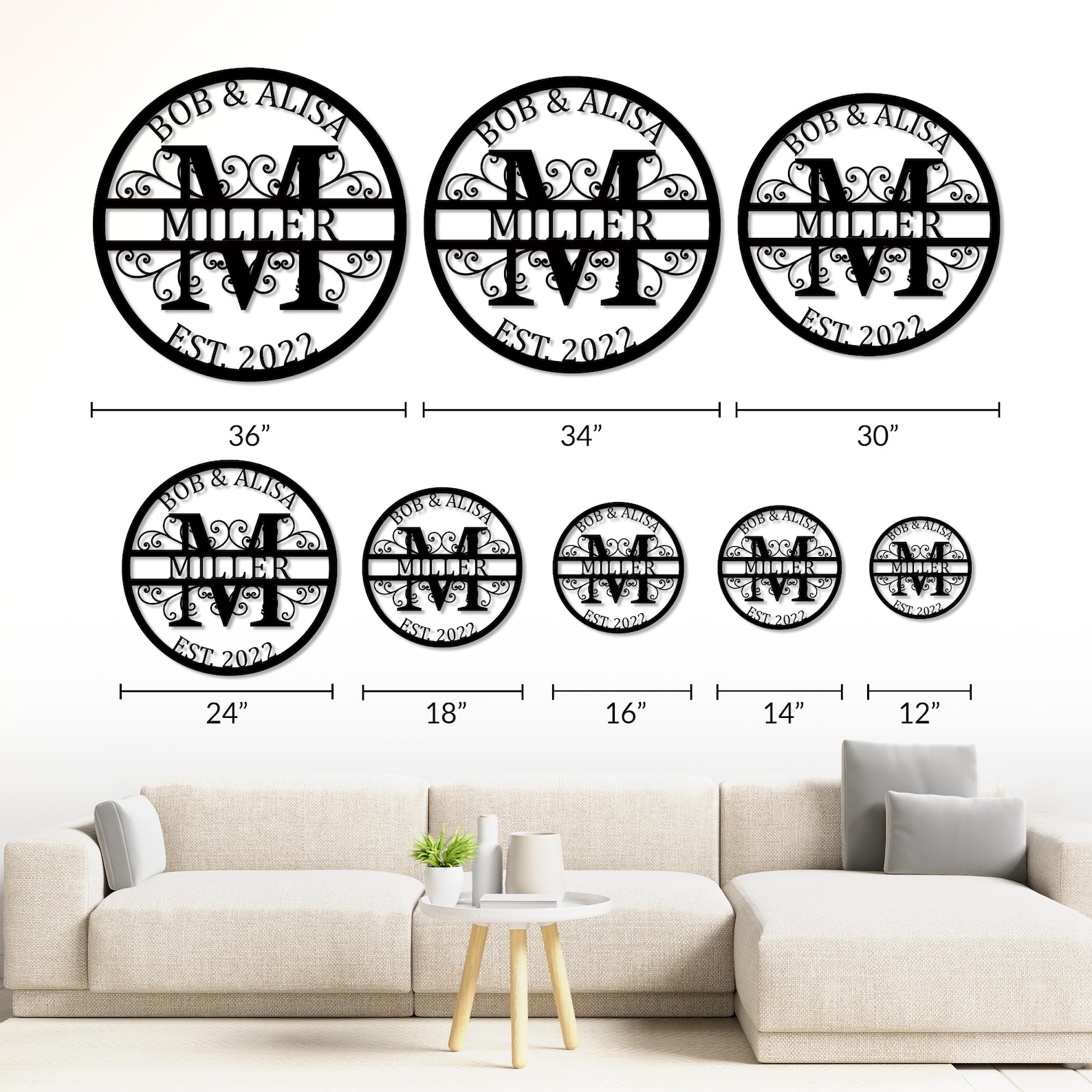 Sizes Variety: There are 12 inches, 16 inches, 18 inches, 24 inches, 30 inches and 36 inches to choose from. This last name metal sign is good for different people.