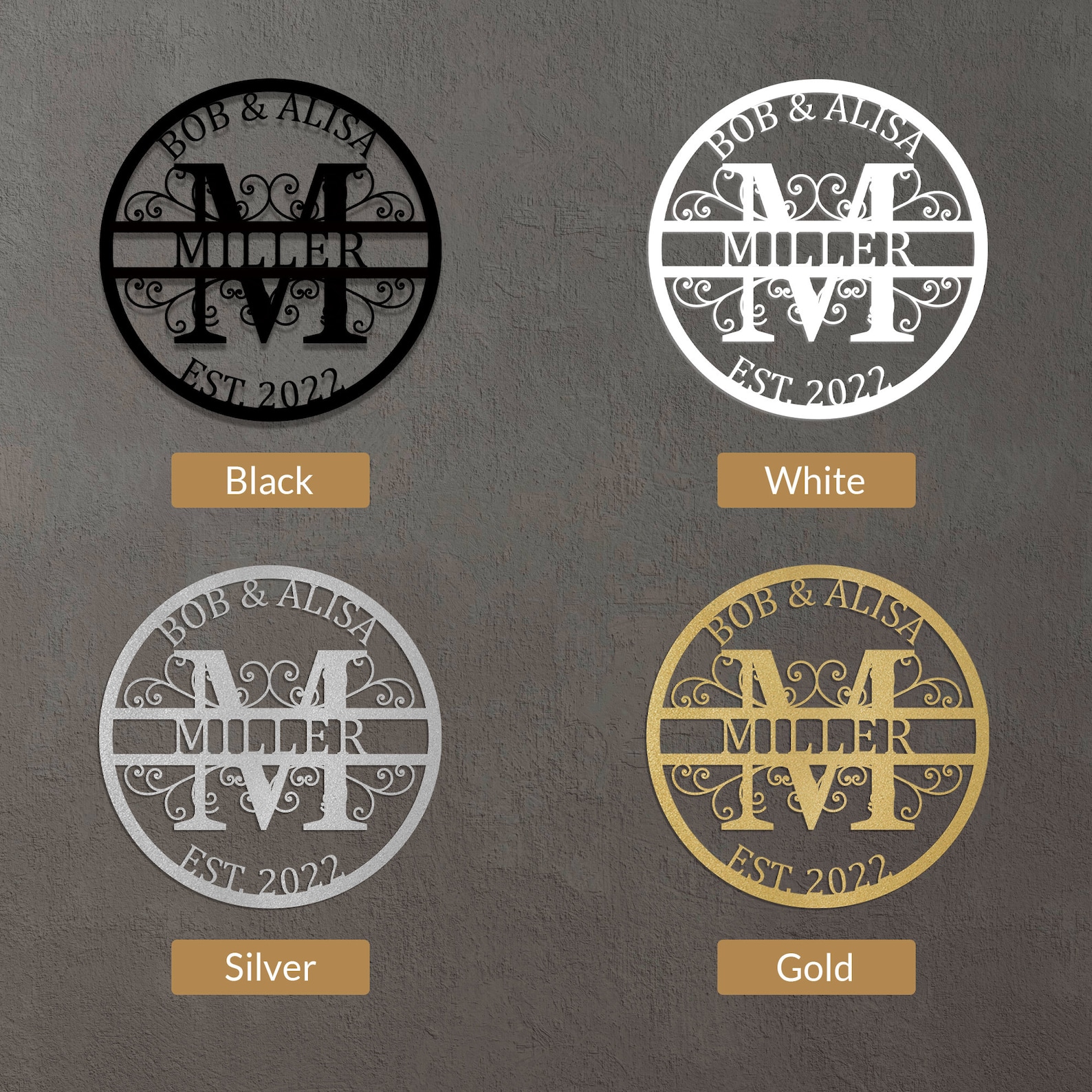 Be the first to review “Personalized Last Name Metal Signs – Split Letter Monogram”